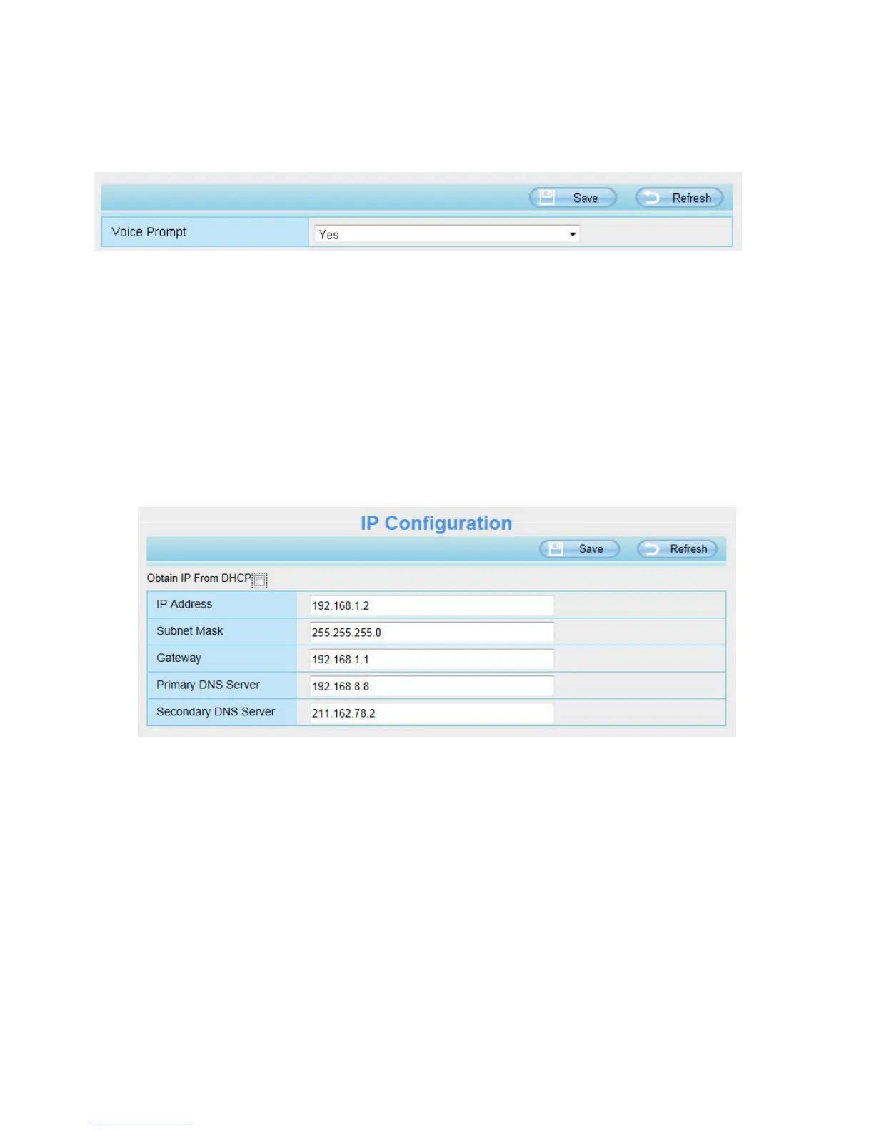 On this page, you can enable or disable voice prompt. Select “Yes” to enable or select “No” to disable.
