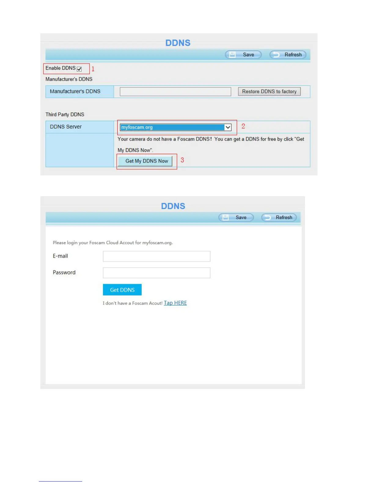 Then login your Foscam Cloud account for myfoscam.org, and click “Get DDNS”.