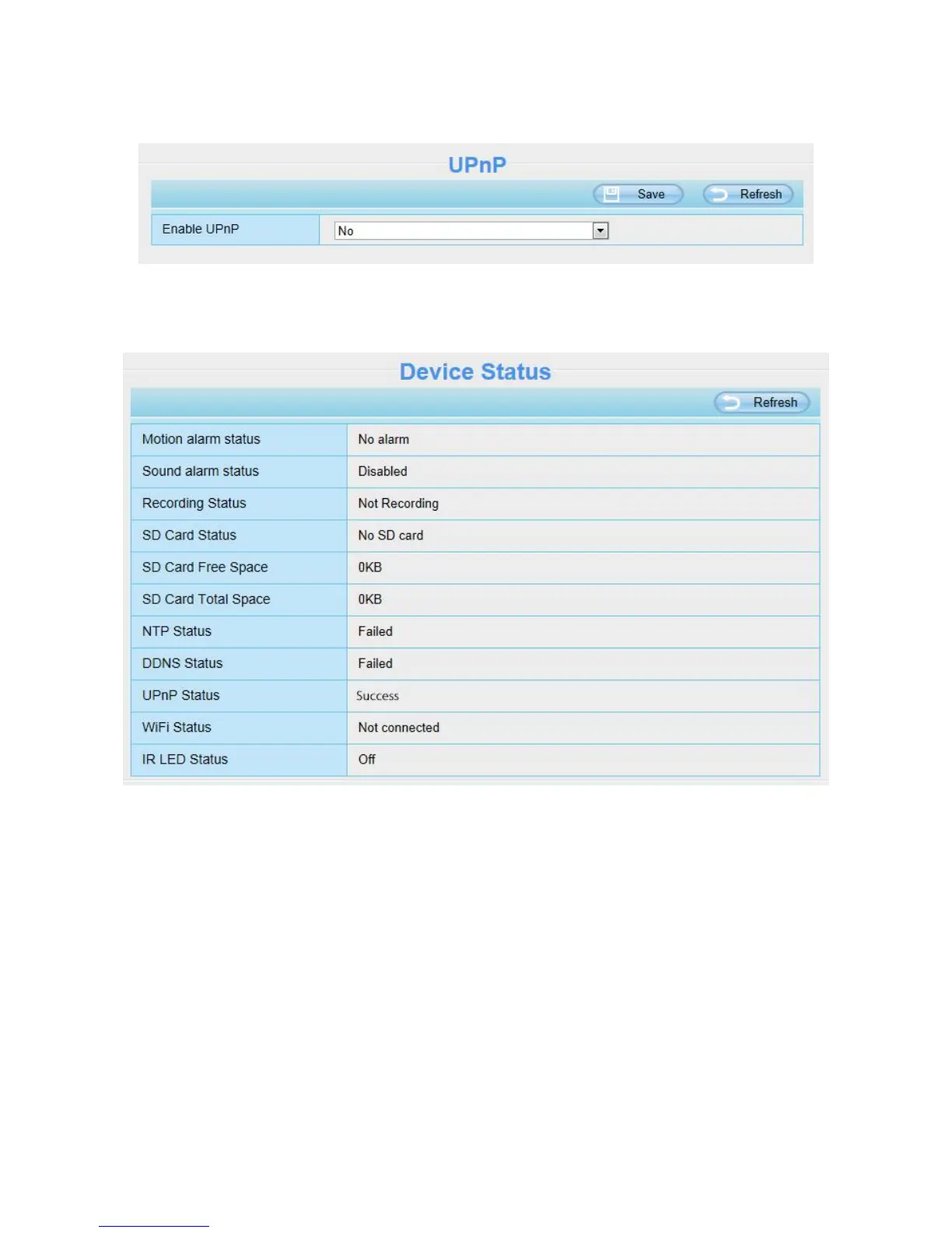 port forwarding. Back to the Status > Device Status panel, you can see the UPnP status: