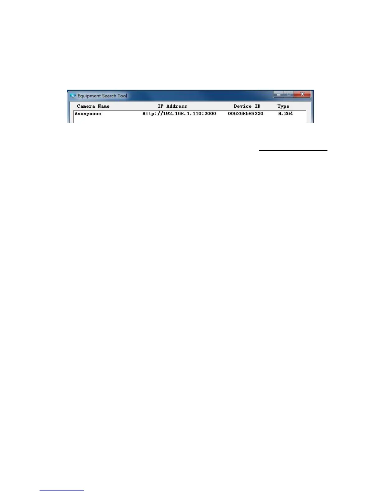 was changed to 2000, so we see http://192.168.1.110:2000 in Equipment Search Tool. Also, the LAN IP
