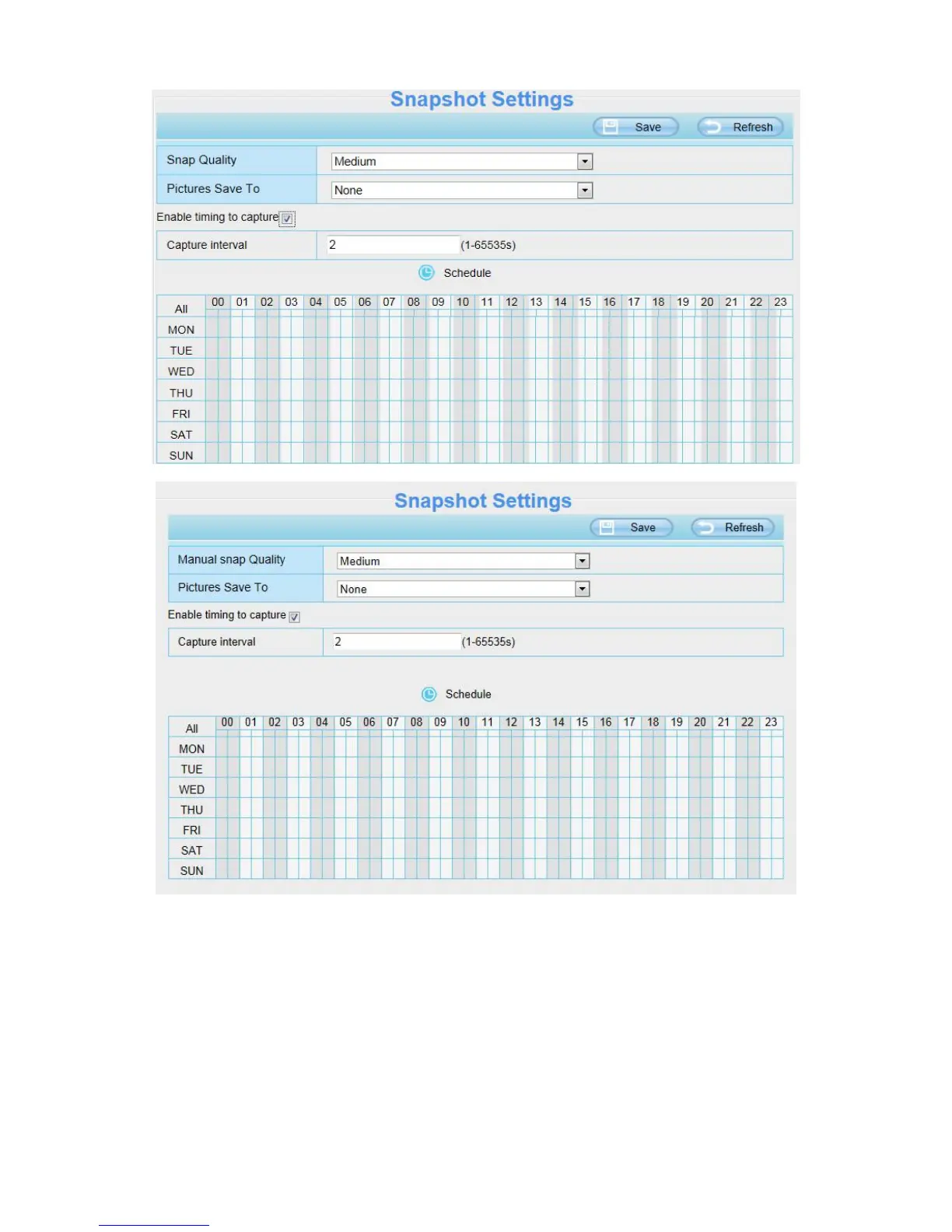 Manual Snap Quality: Low, Middle and High. The higher the quality, the picture will be clearer.