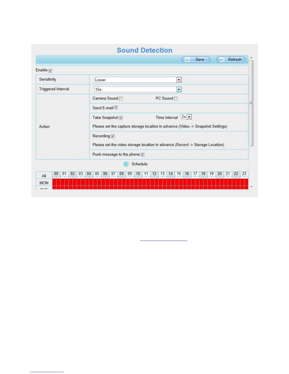 For how to enable Sound Detection, please refer to 4.5.1 Motion Detection.