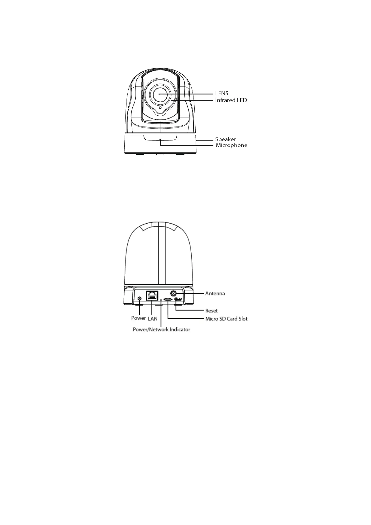 Reset Button: Push and hold for more than 5 seconds to set the camera to factory default.