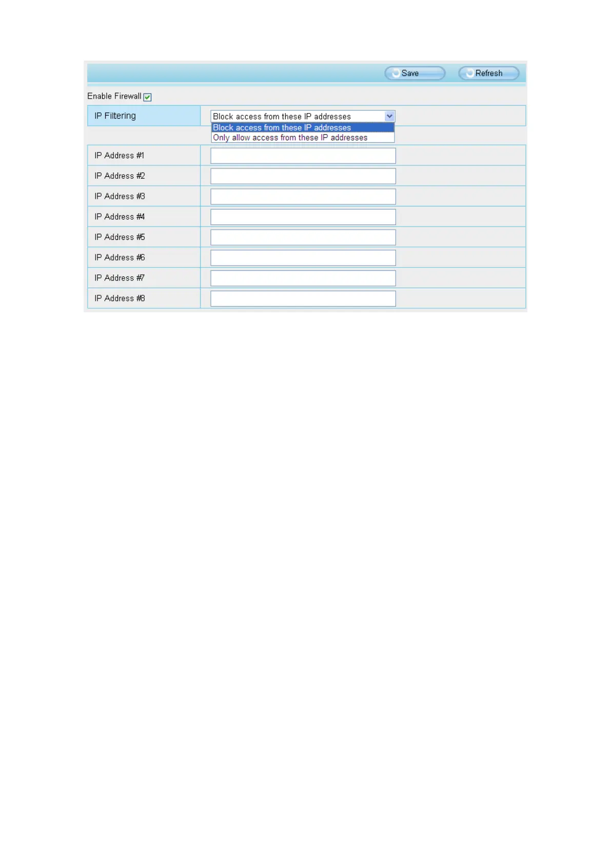 Enable firewall, If you select Only allow access from these IP addresses and fill in 8 IP addresses at