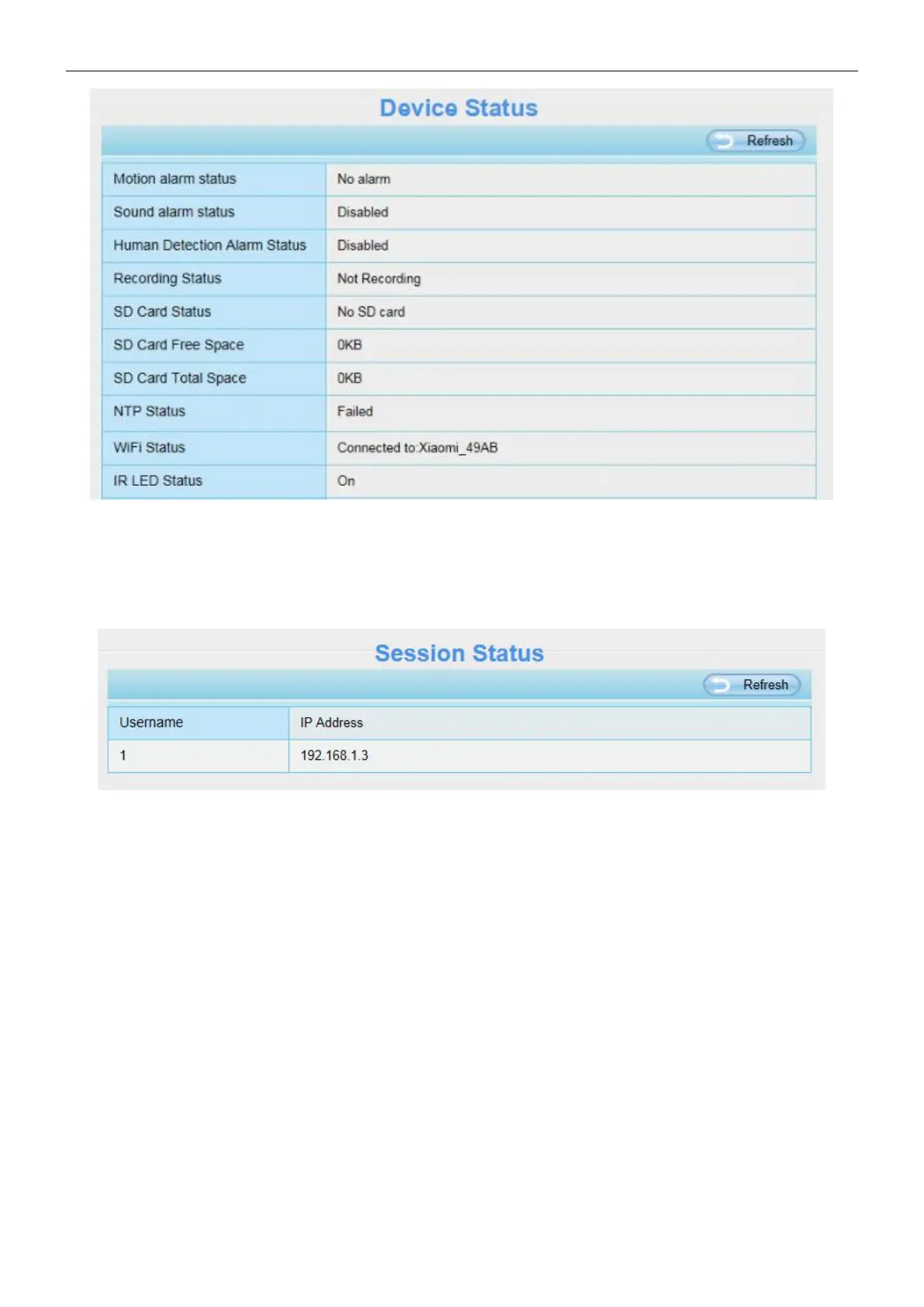 Session status will display who and which IP is visiting the camera now.