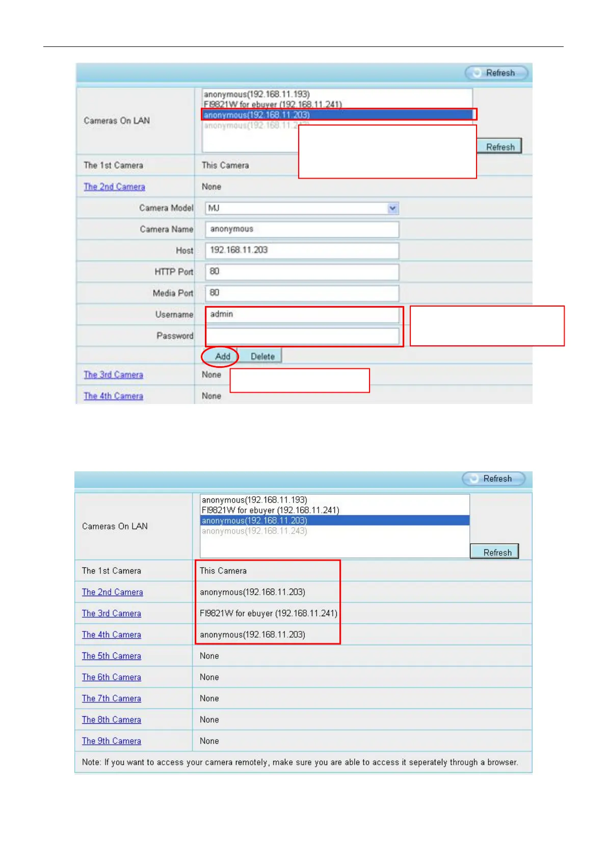 password of the 2nd camera.