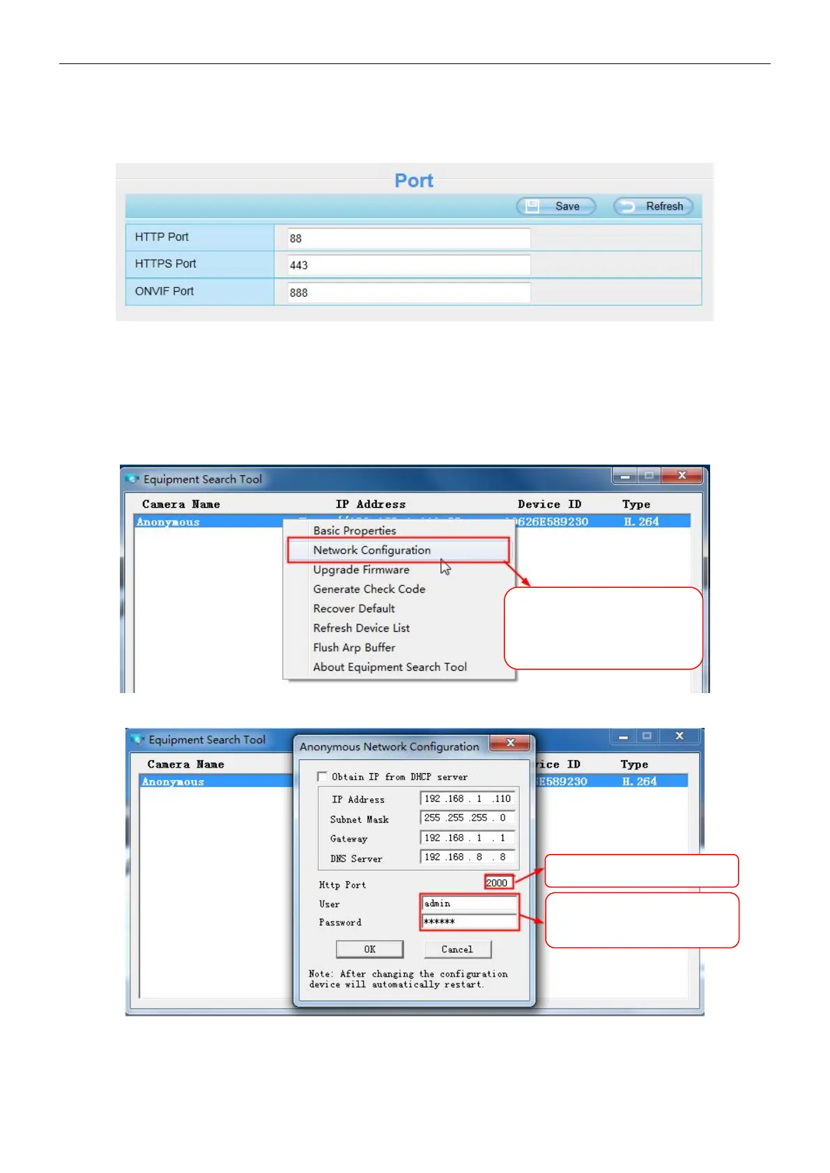 Step 1, Open the Equipment Search Tool, select the camera you would like to change the port of, right click on