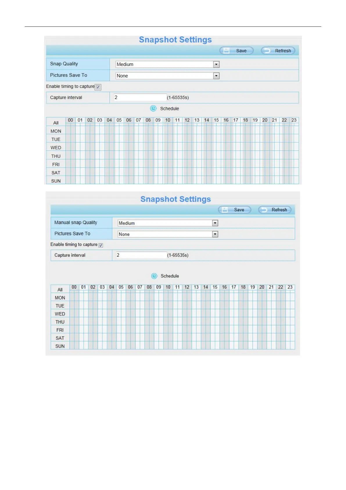 Manual Snap Quality: Low, Middle and High. The higher the quality, the picture will be clearer.