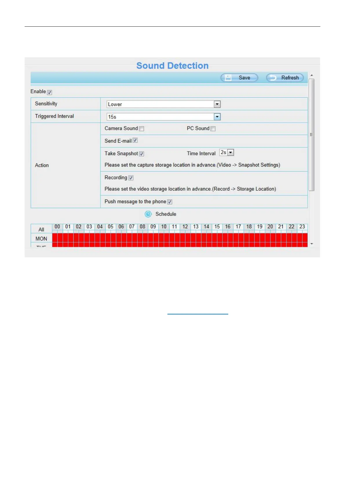 For how to enable Sound Detection, please refer to 4.5.1 Motion Detection.