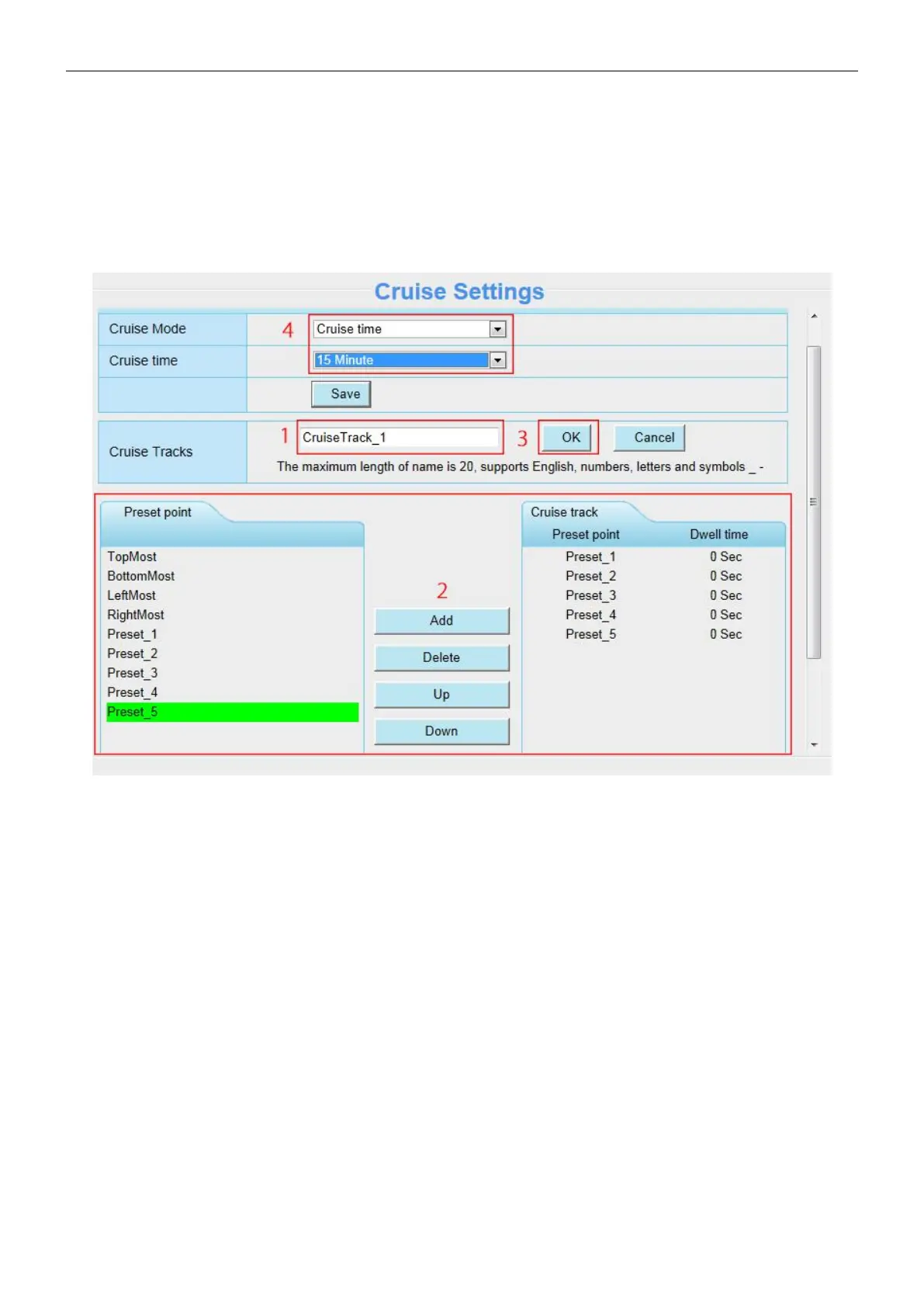 Note: Two or more preset points should be added to the cruise track, so the new cruise track will be added OK.