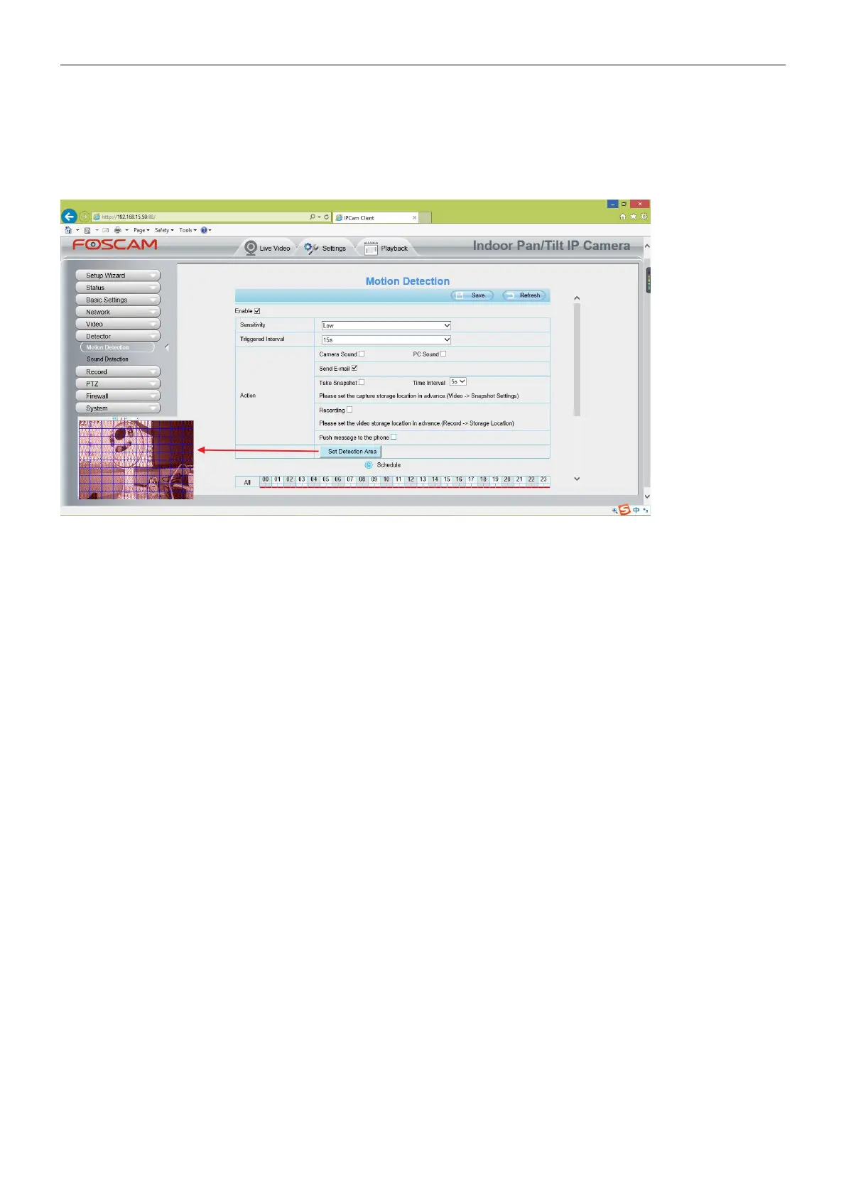 (3) Please DO NOT forget to set the alarm area, the detected area is covered by the red grids. Or for some