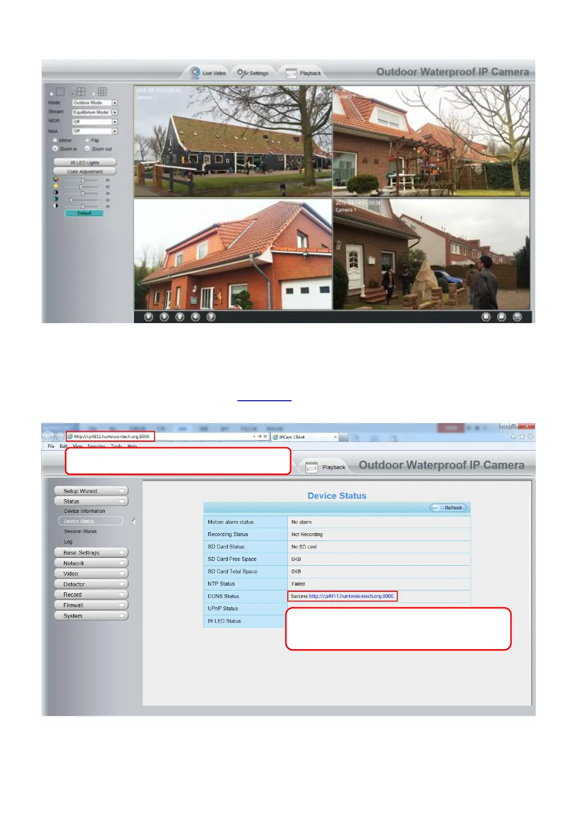 Login to the first camera using a DDNS domain name and port.