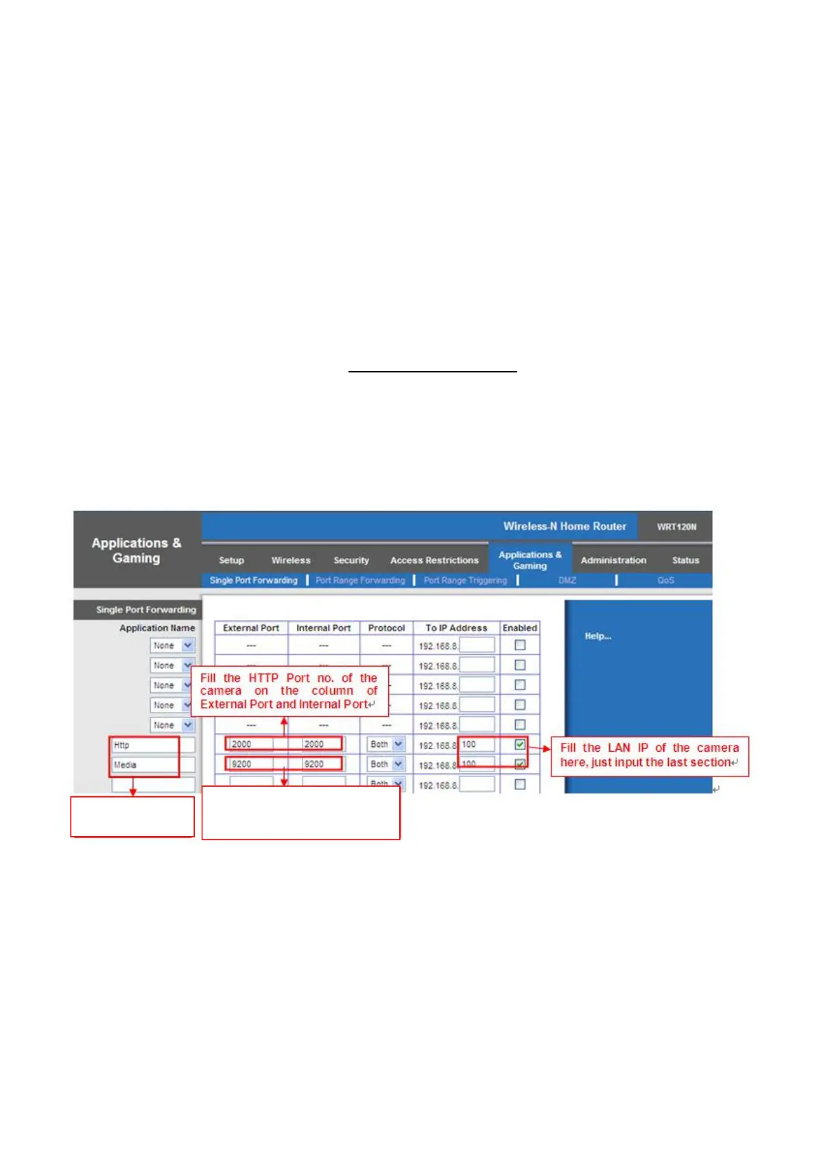 Secondly, Create a new column by LAN IP address & HTTP Port No. of the camera within the router showed