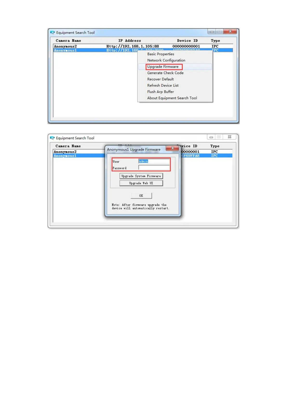 3) Never shut down the power of the camera during upgrade until the IP camera restart and get connected.