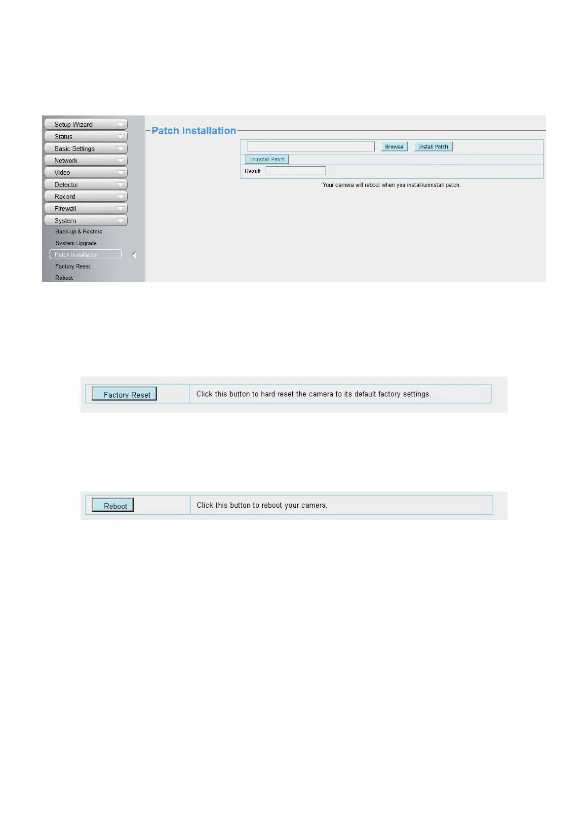 Click Reboot to reboot the camera. This is similar to unplugging the power to the camera.