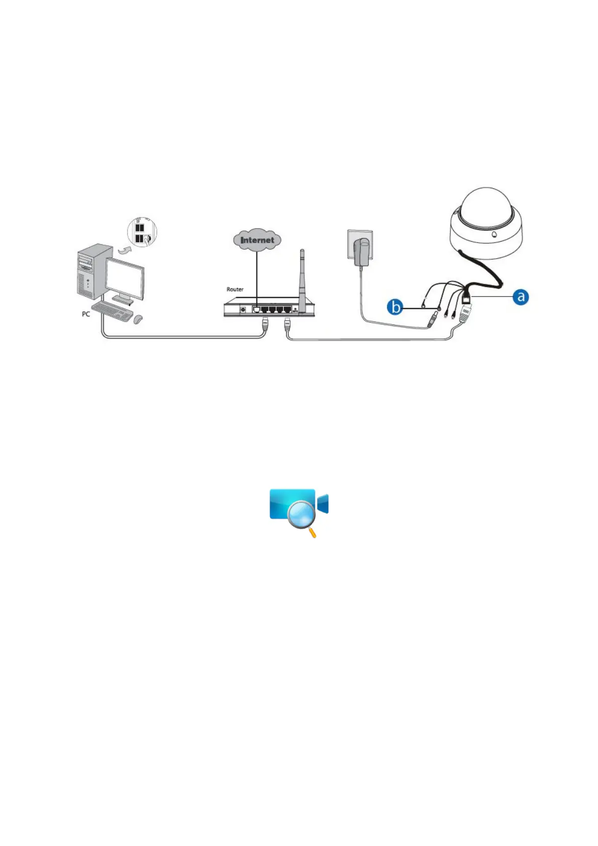 a. Connect the camera to the LAN network (Router or Switch) via network cable.