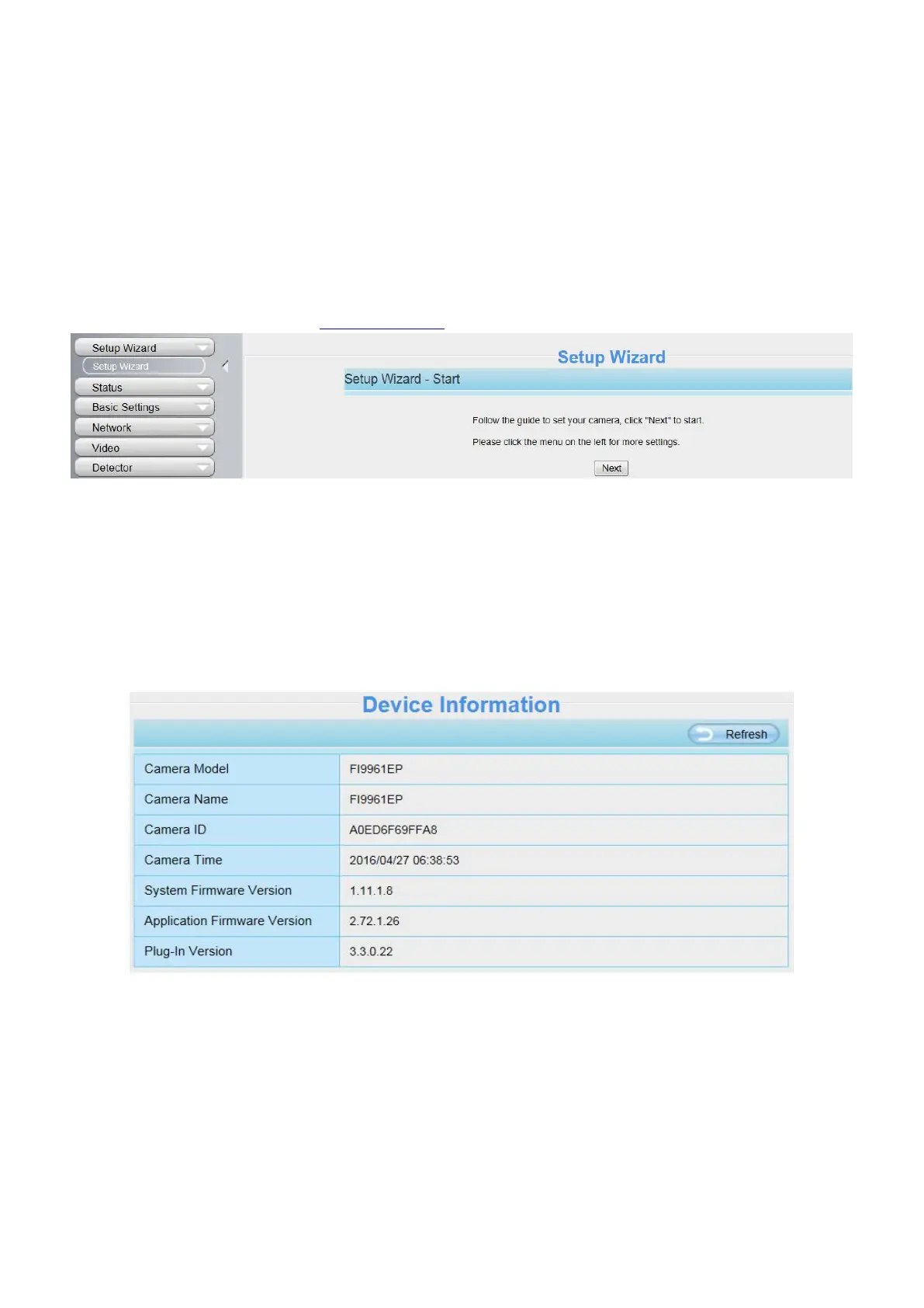Camera ID: Display the MAC address of your camera. For example Device ID is 008414350787, the same