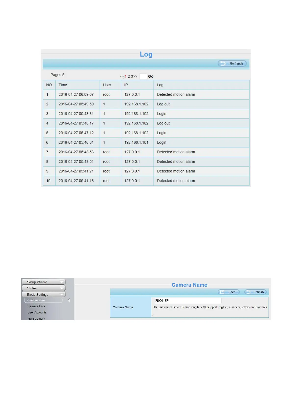 Foscam FI9962EP - Log; Basic Settings; Camera Name; Camera Time