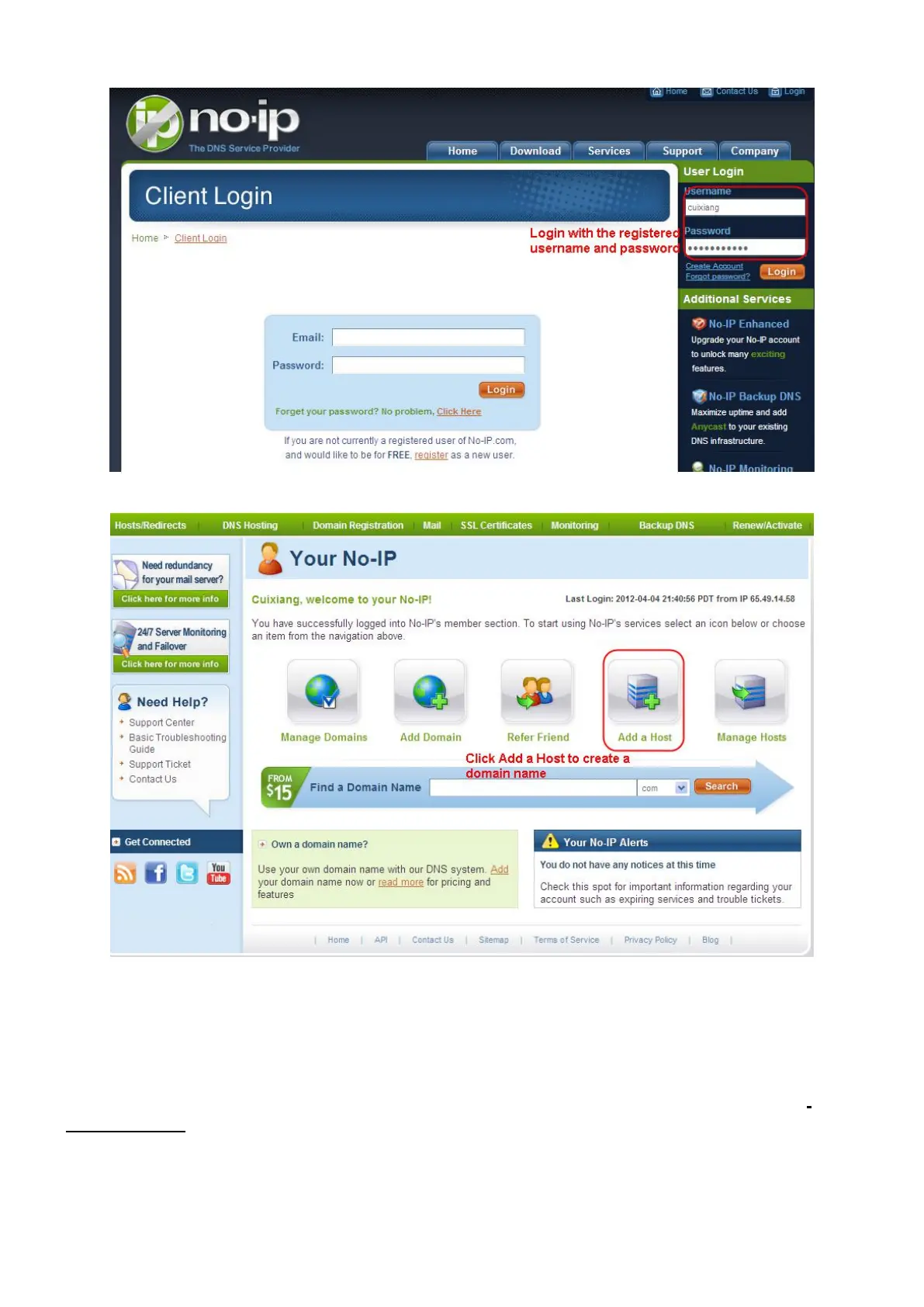 Please create the domain name step by step according to instructions on www.no-ip.com