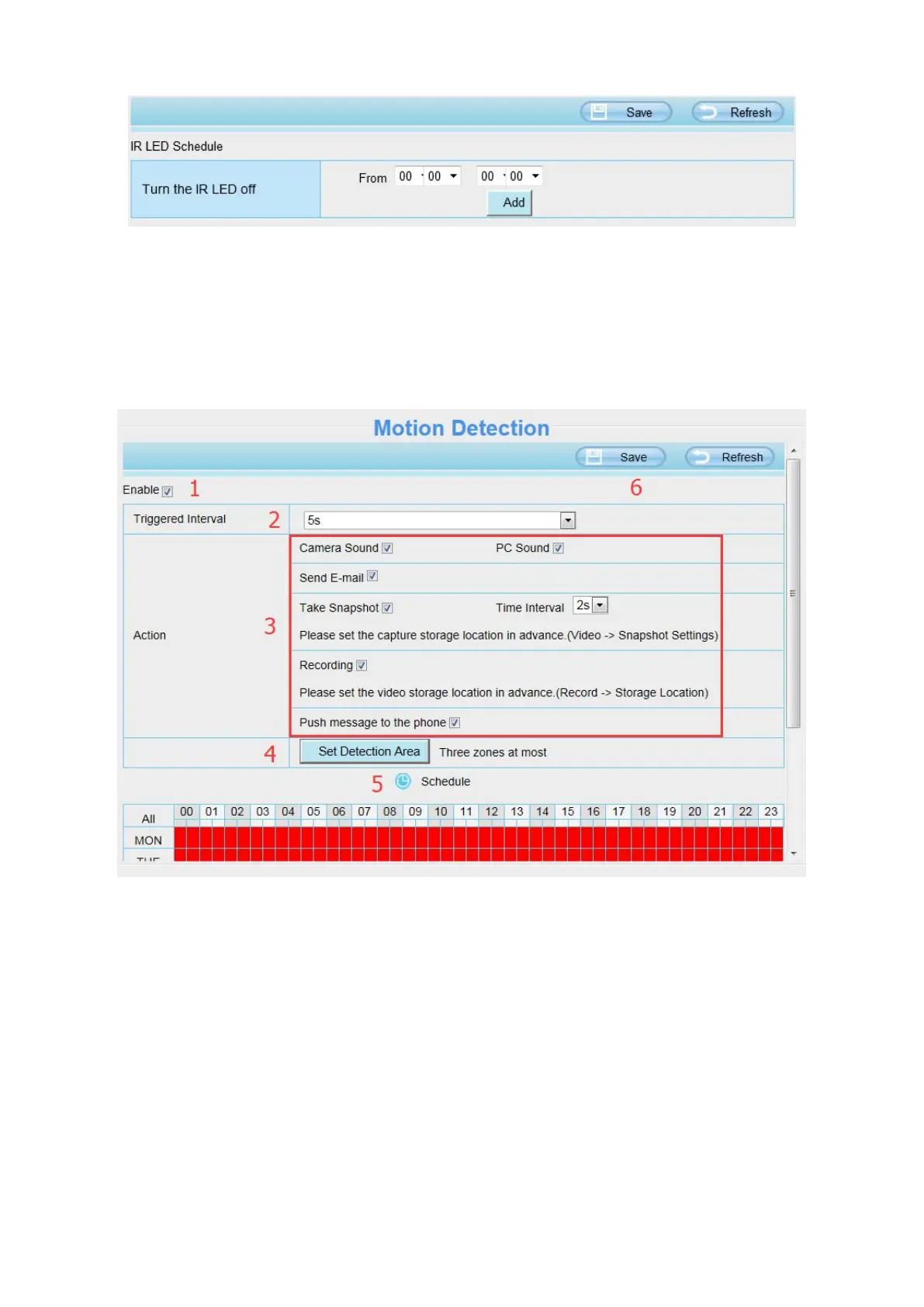 2 Trigger interval--- The interval time between two motion detections. Here supports 5s / 6s / 7s / 8s / 9s / 10s