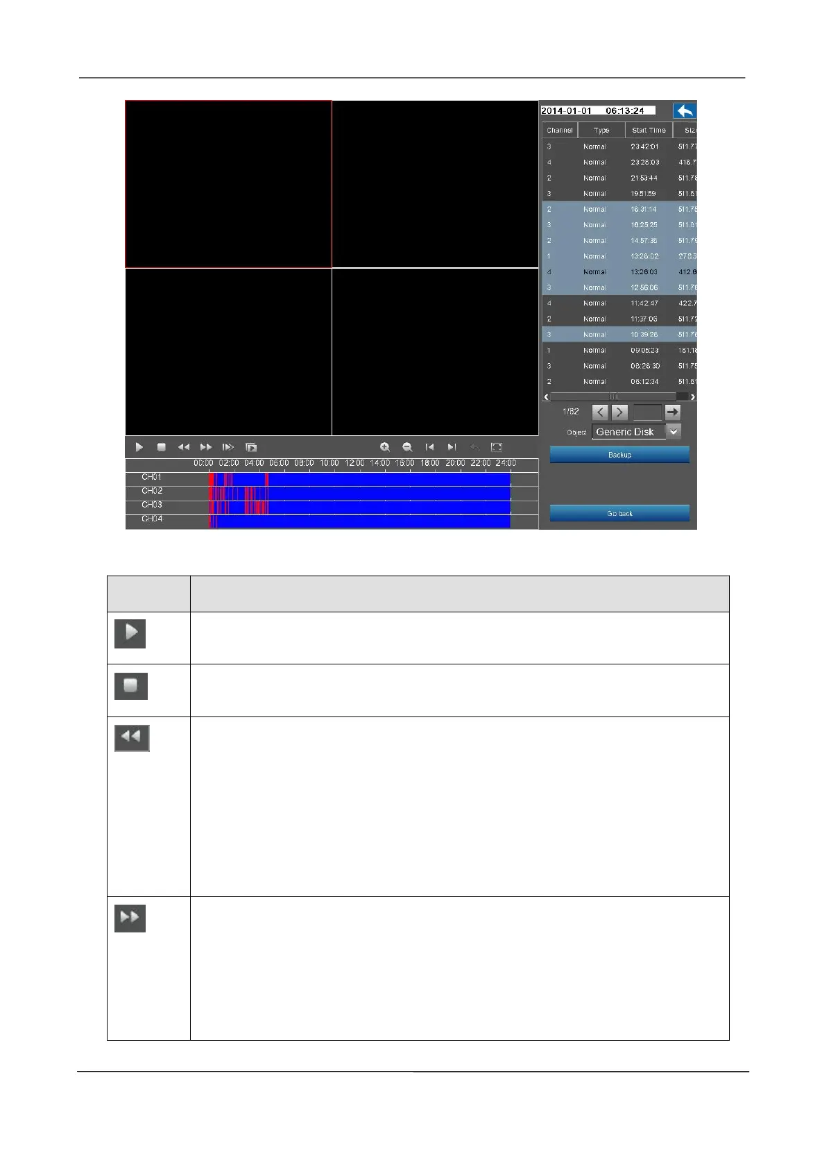 Fast backward. The fast backward speed can be 4 times, 8 times, 16 times or 32