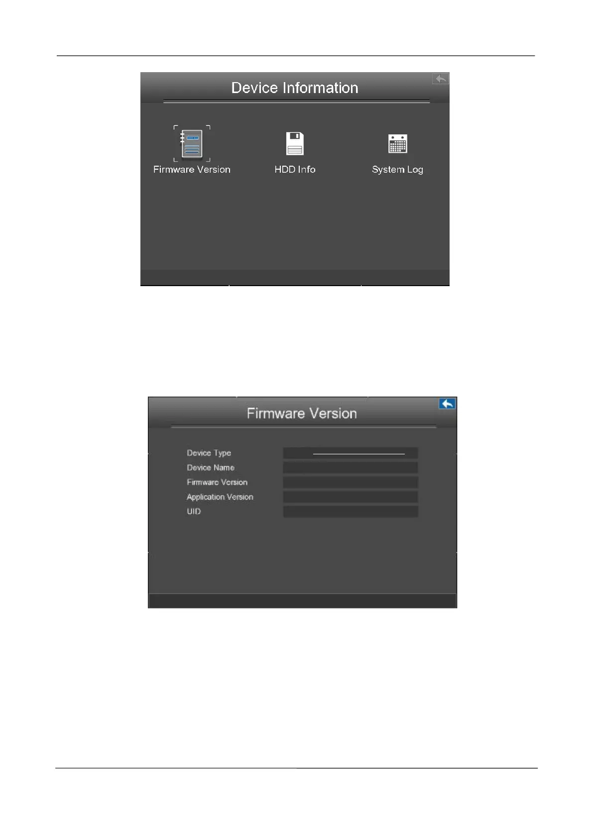 is displayed. You can view the Device Type, Device Name, Firmware Version and Application