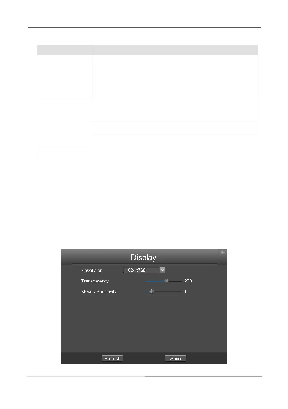 can configure the display mode, Resolution, Transparency, Mouse Sensitivity and Interval for the