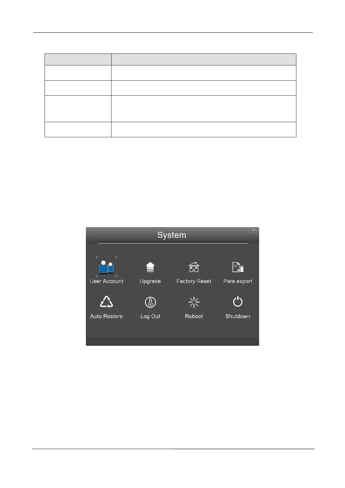 Choose Menu > System > User Account in the Menu interface. The User account management
