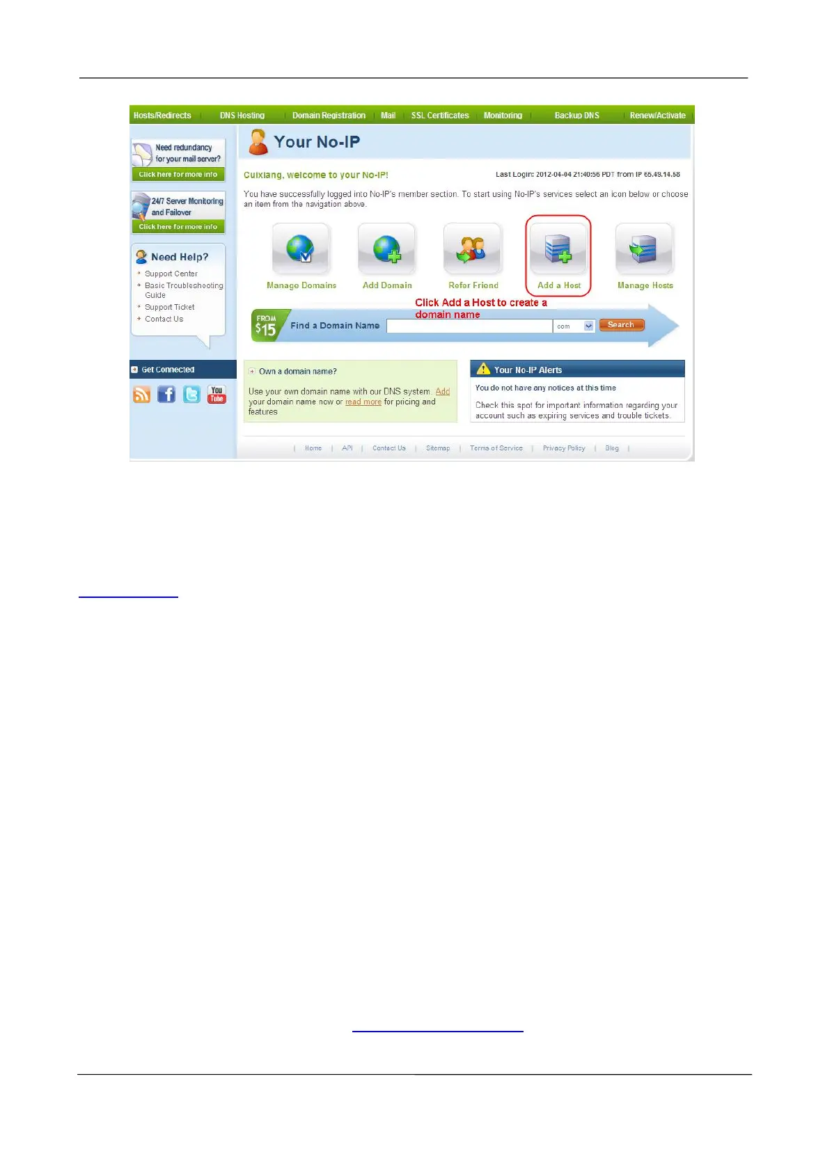 Take hostname ycxgwp.no-ip.info, user name cam, password cam2012 for example.
