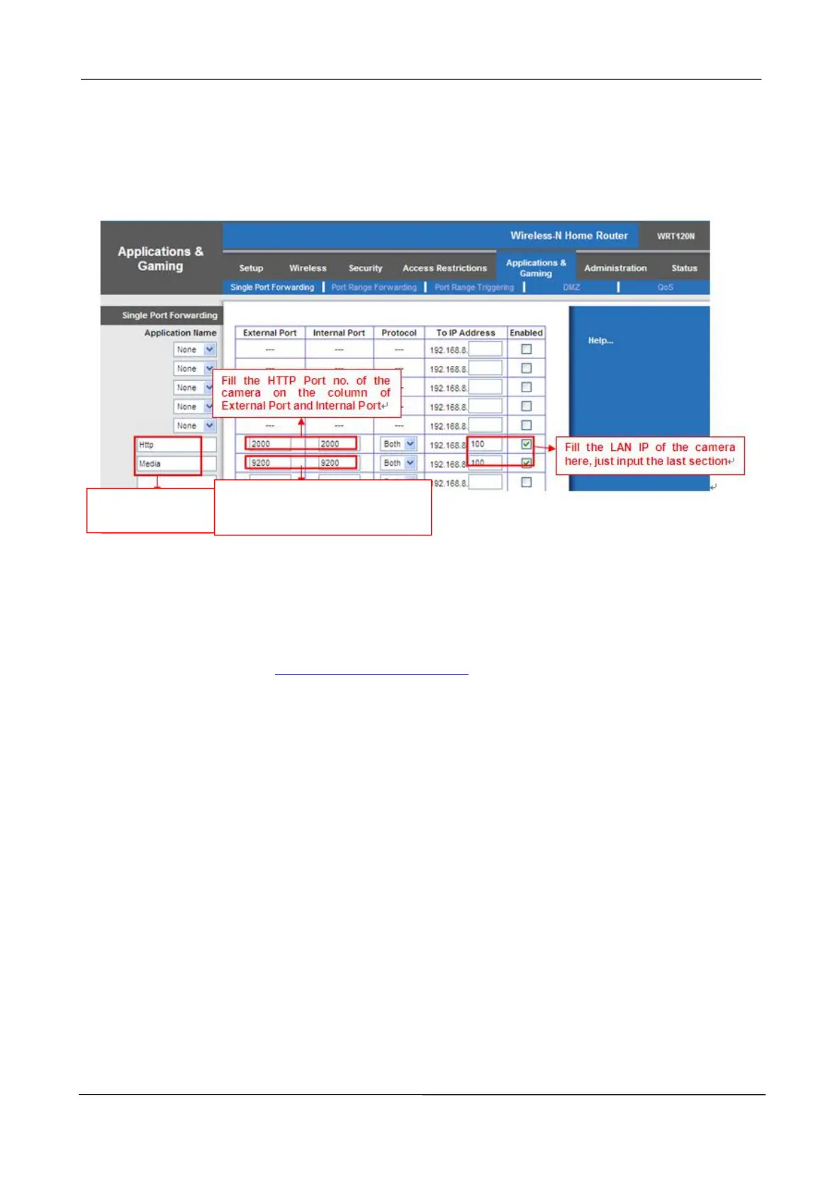 After the port forwarding is finished, you can use the domain name+ http no.to access the camera via