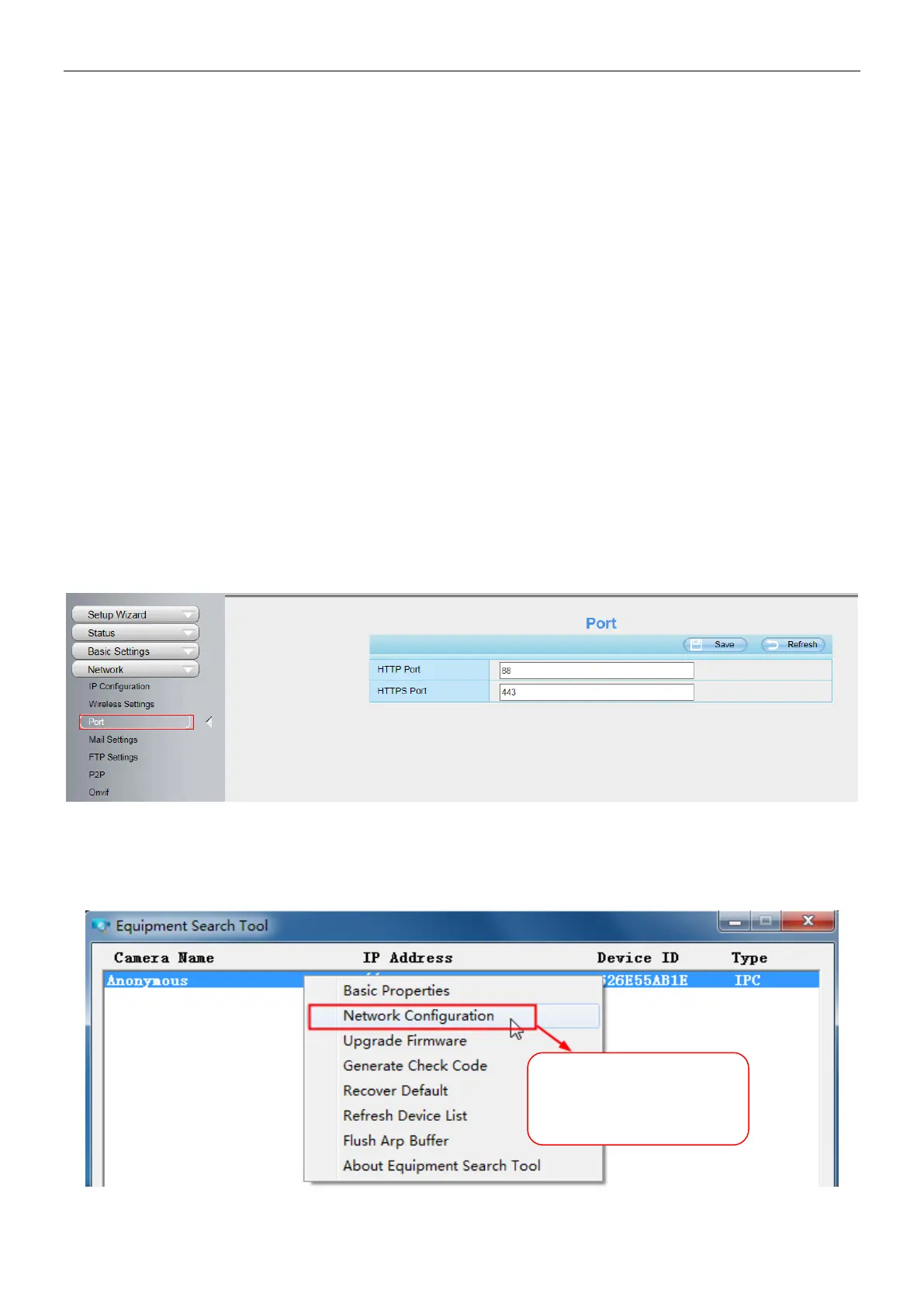 This camera supports HTTP Port / HTTPS Port / ONVIF Port. HTTP Port is used to access the camera