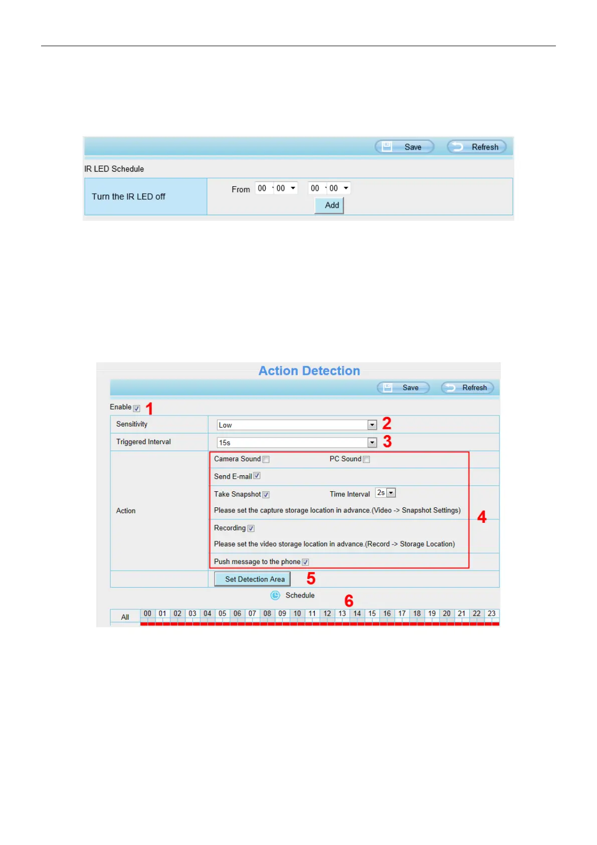 Schedule on the Live Video window, At these schedule time, the IR LED lights will be turned off.