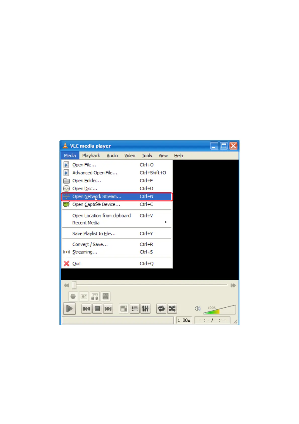 Here I can enter one of the following URLs in the VLC.