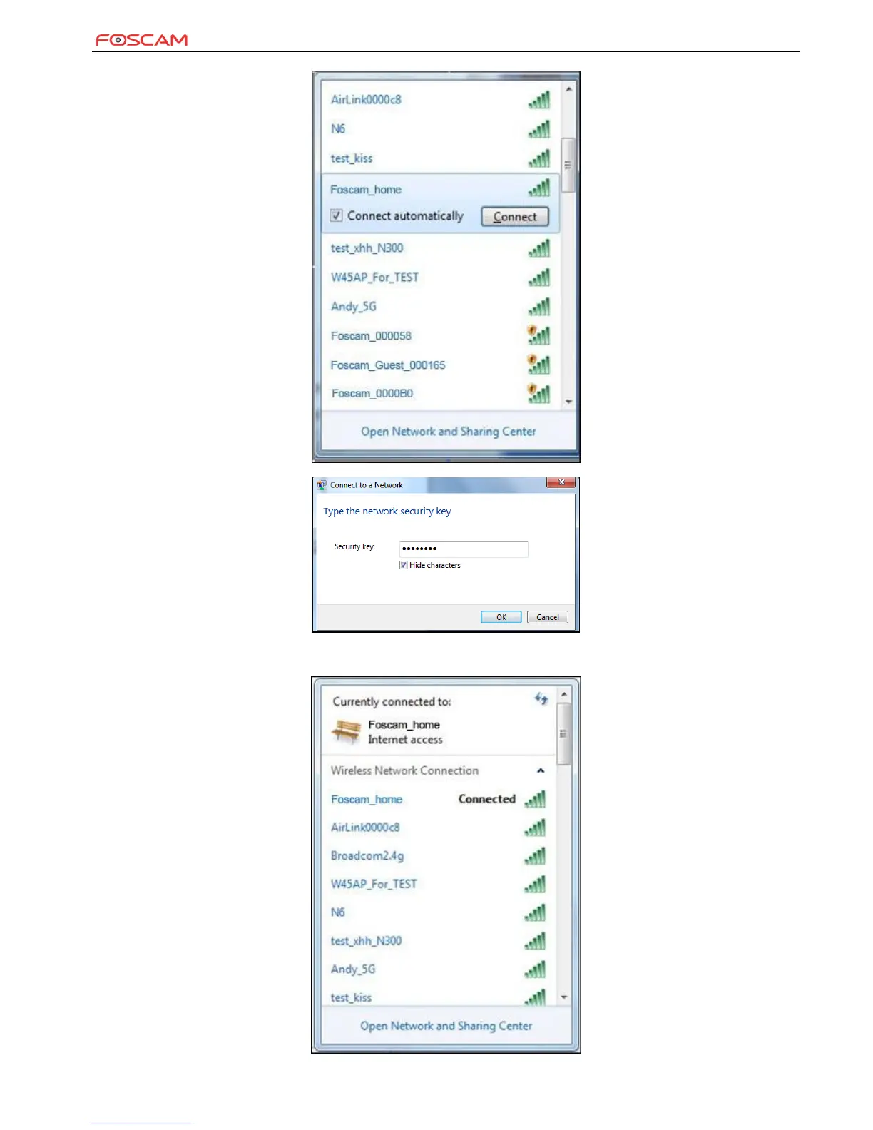 8) You can access the Internet via the device when "Connected" appears next to the wireless network name you have selected.