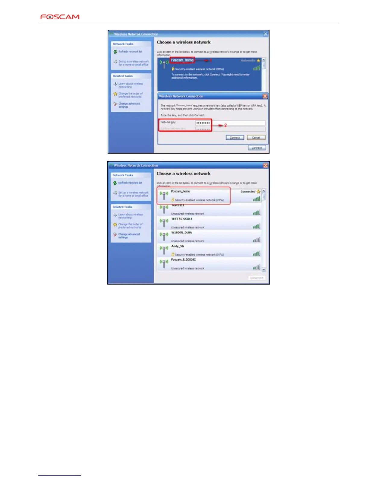 4) Select the desired wireless network, click Connect, enter the security key and then click OK.