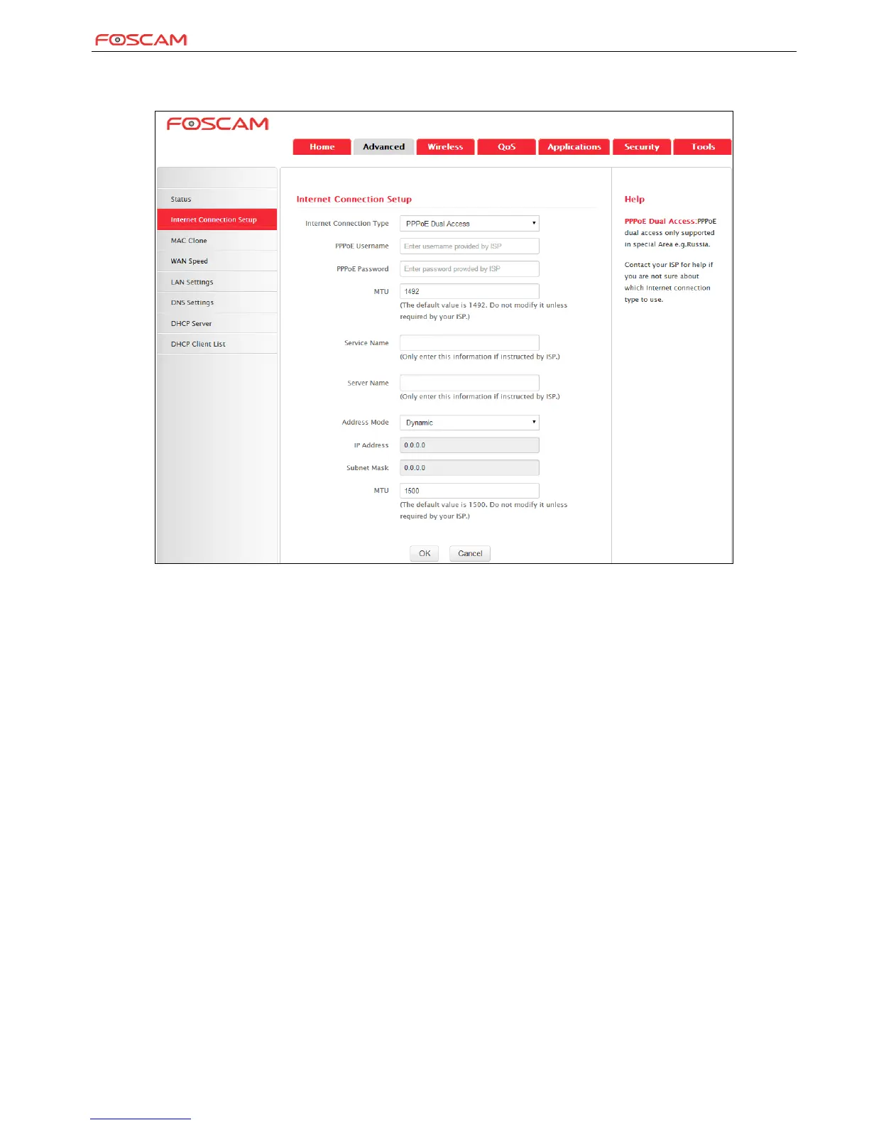 Address Mode: Select "Dynamic" if you don’t get any IP info from your ISP, otherwise select "Static". Consult your ISP if you are