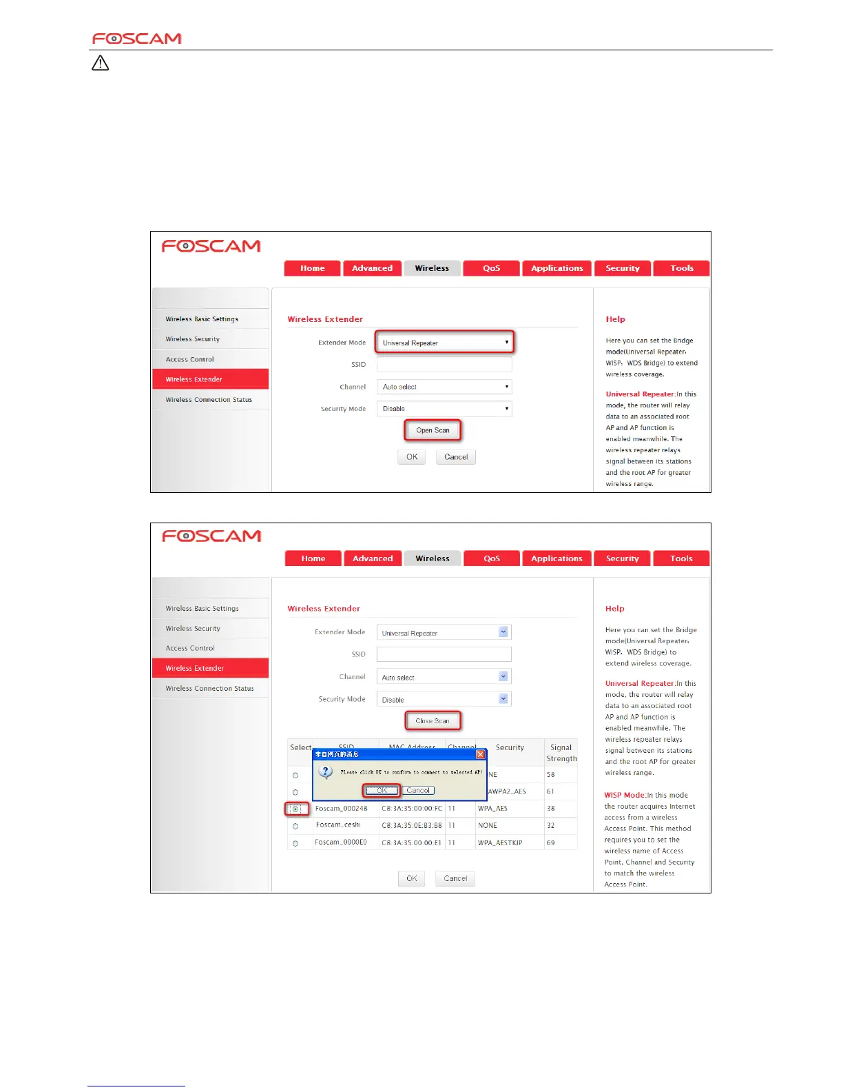 1. Click Wireless>Wireless Extender, select Universal Repeater in the extender mode and click Open Scan.