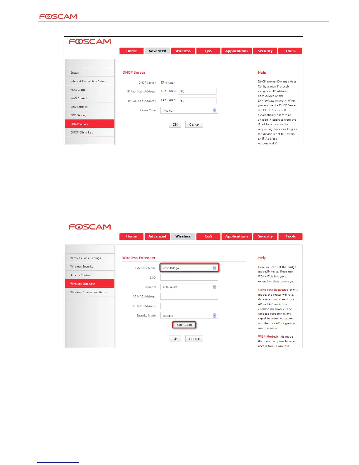 4. Verify that DHCP server is enabled on Router 1: Click Advanced>DHCP Server.