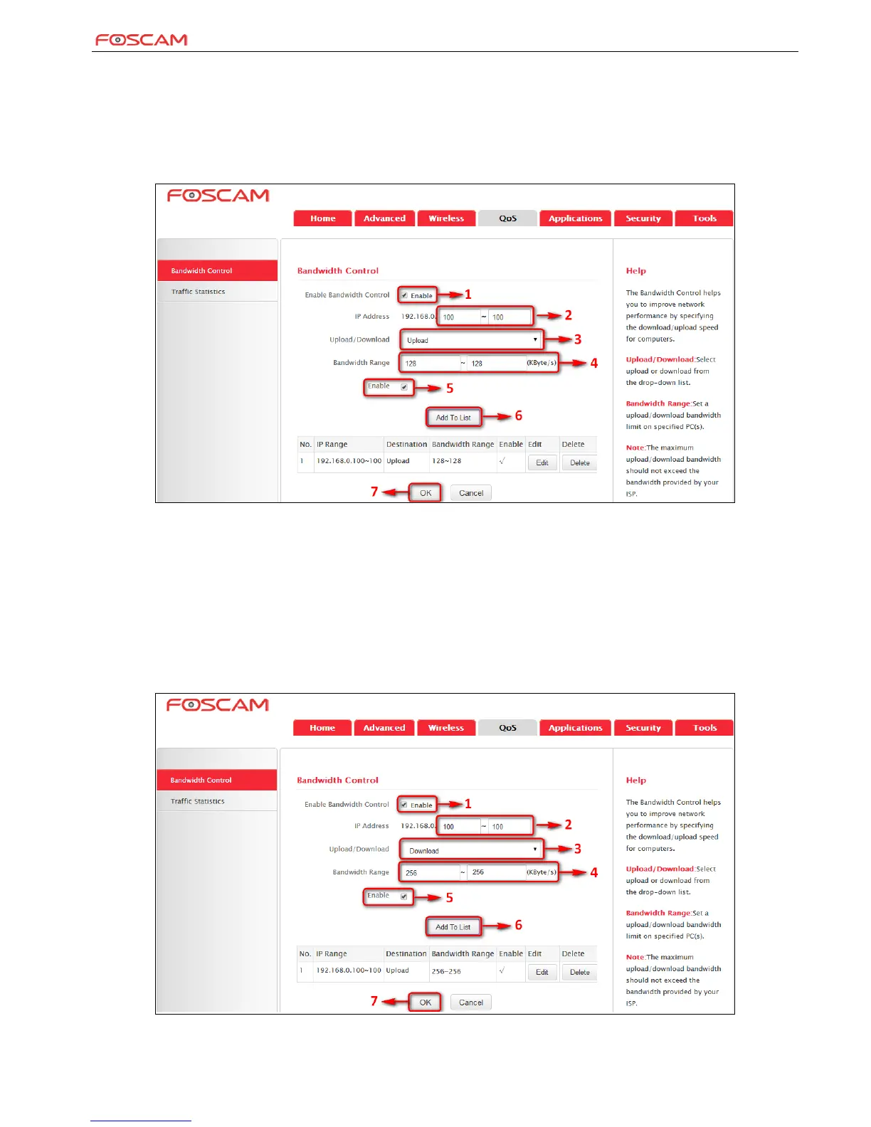 that maximum upload/download bandwidth should not exceed your router's WAN bandwidth limit. (Consult your ISP if you are not clear.).