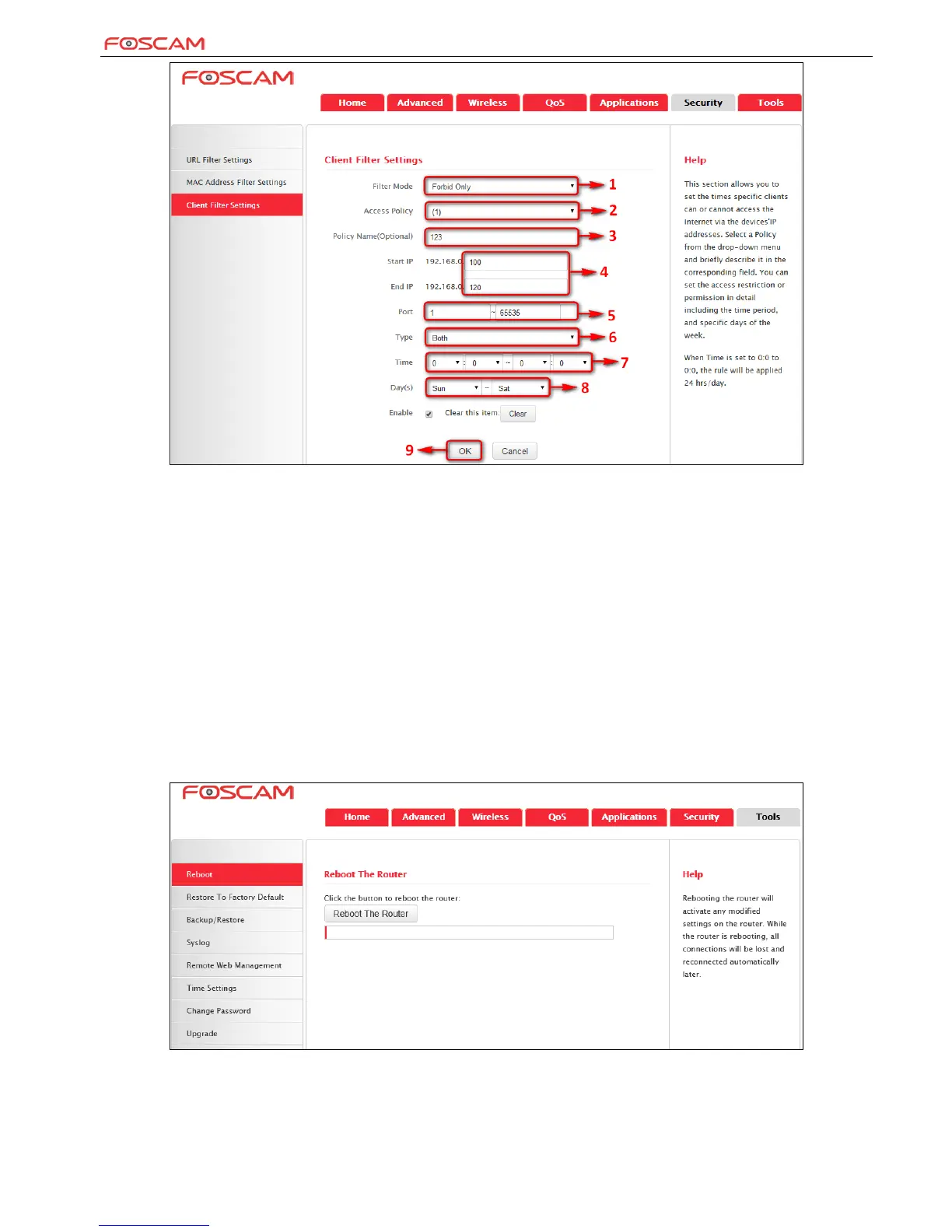 6) Port: Enter 1-65535 to forbid all Internet services and applications.