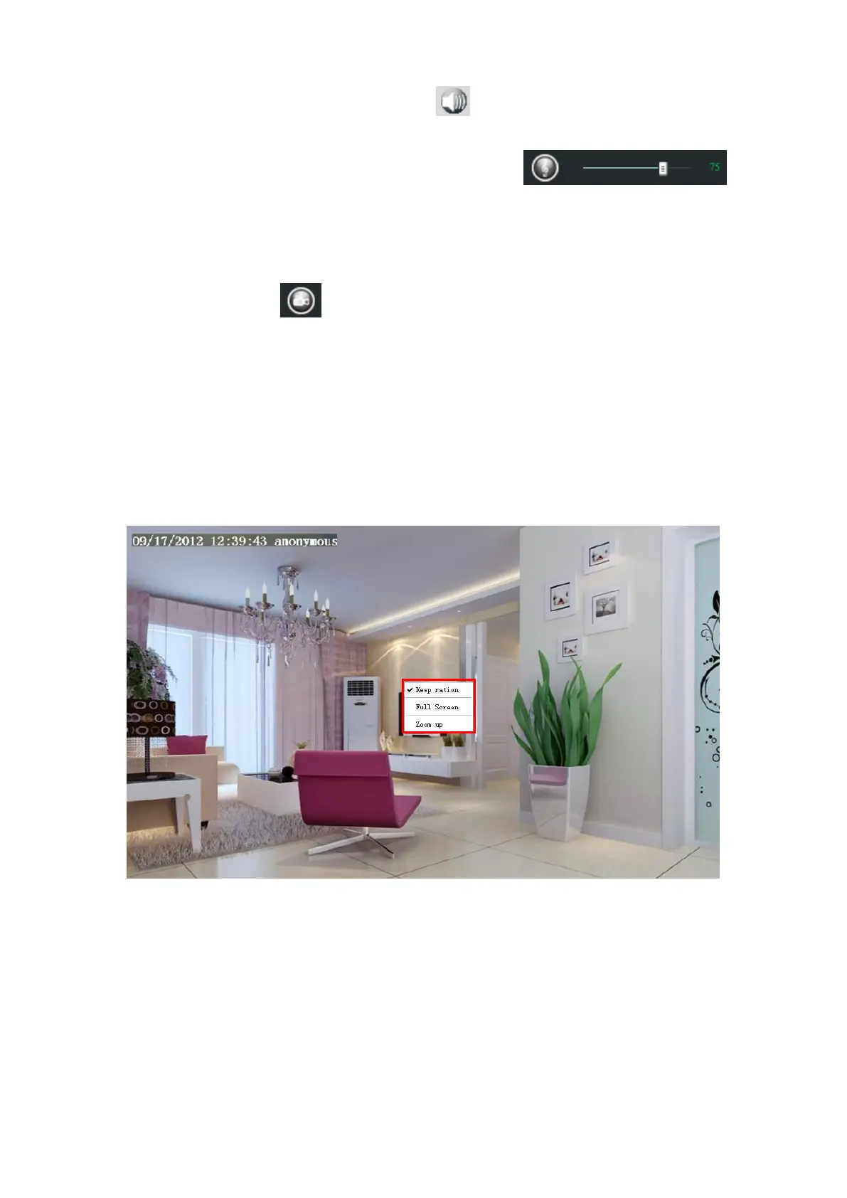 4----- Audio Click this icon, the icon will become to you can hear the sound around the camera