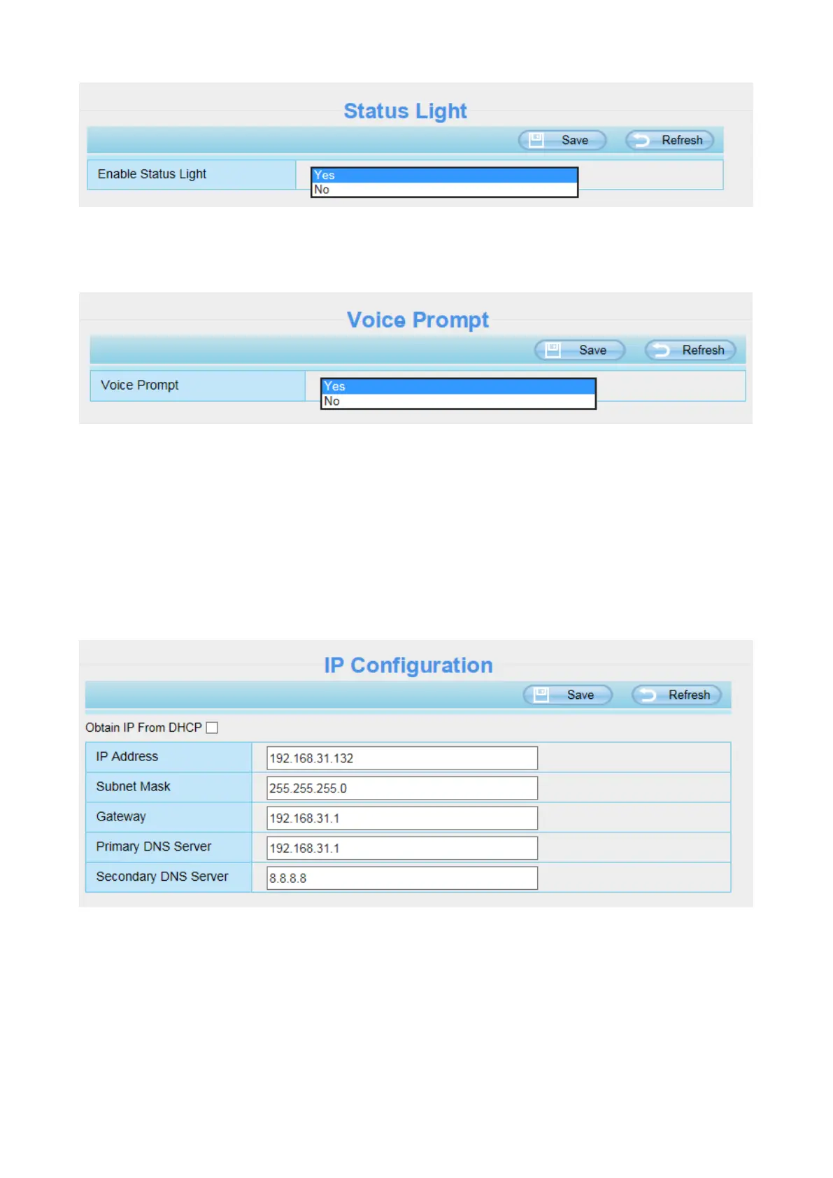 If you want to set a static IP for the camera, please go to IP Configuration page. Keep the camera in the