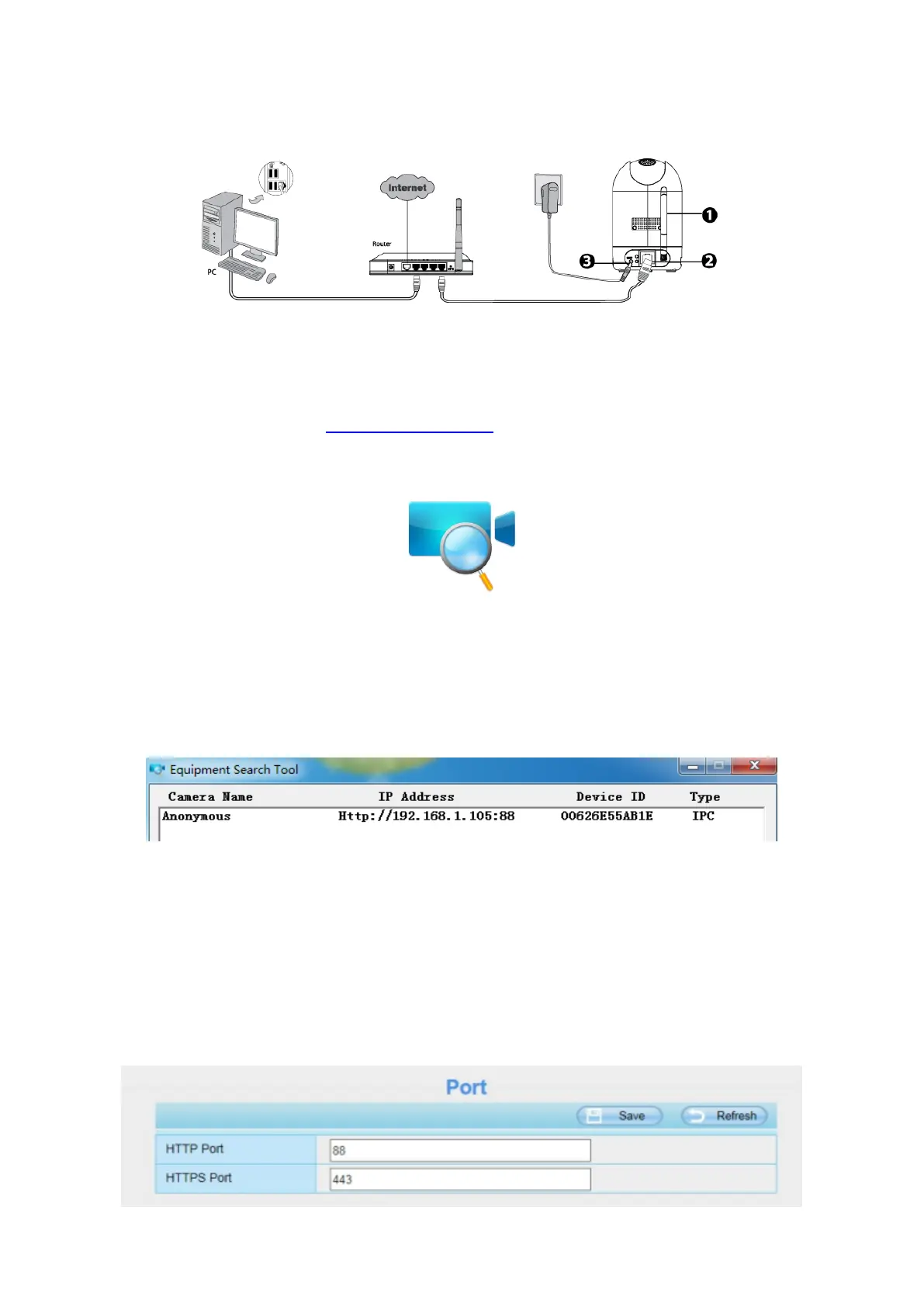 The default HTTP port NO. is 88. Double click the Equipment Search Tool icon to run, and it should find