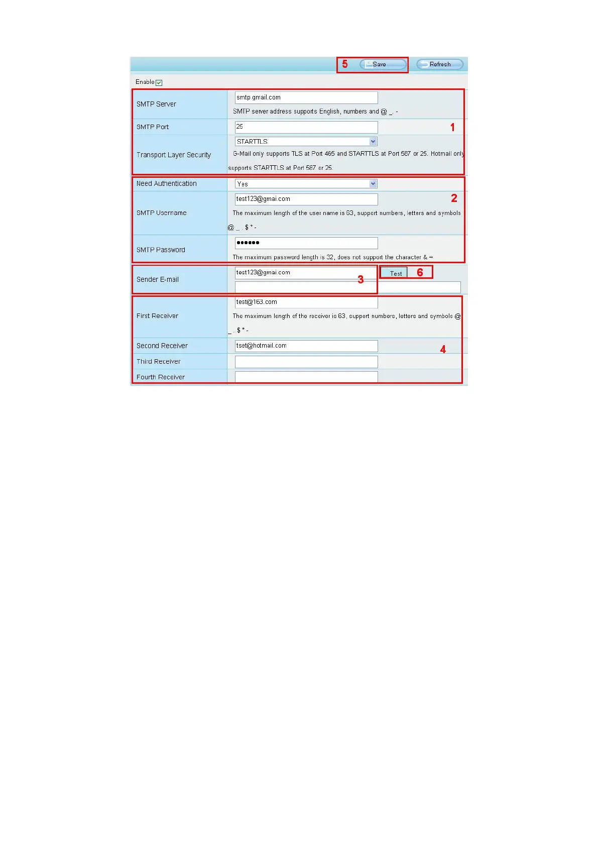 1---- SMTP Server/ Port /Transport Layer Security Enter SMTP server for sender. SMTP port is