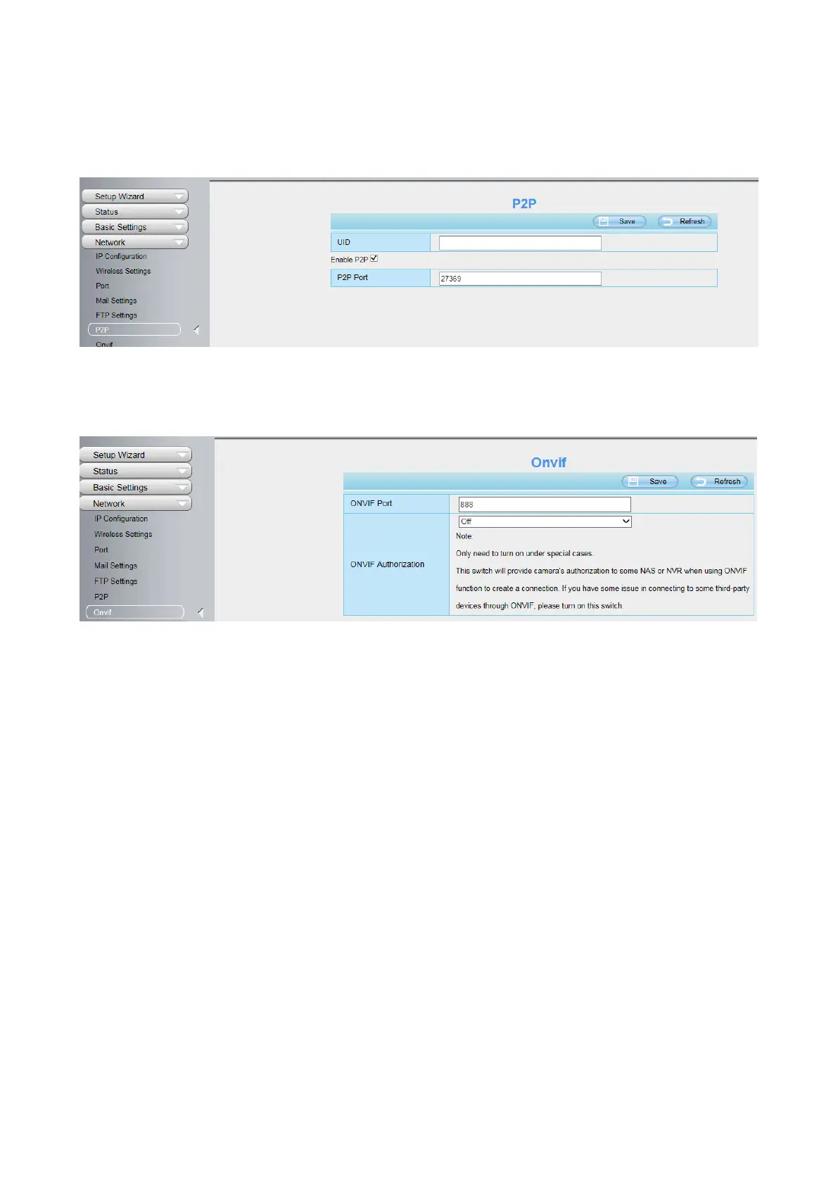 First of all, you need to open the P2P function of the camera at Settings > Network > P2P.