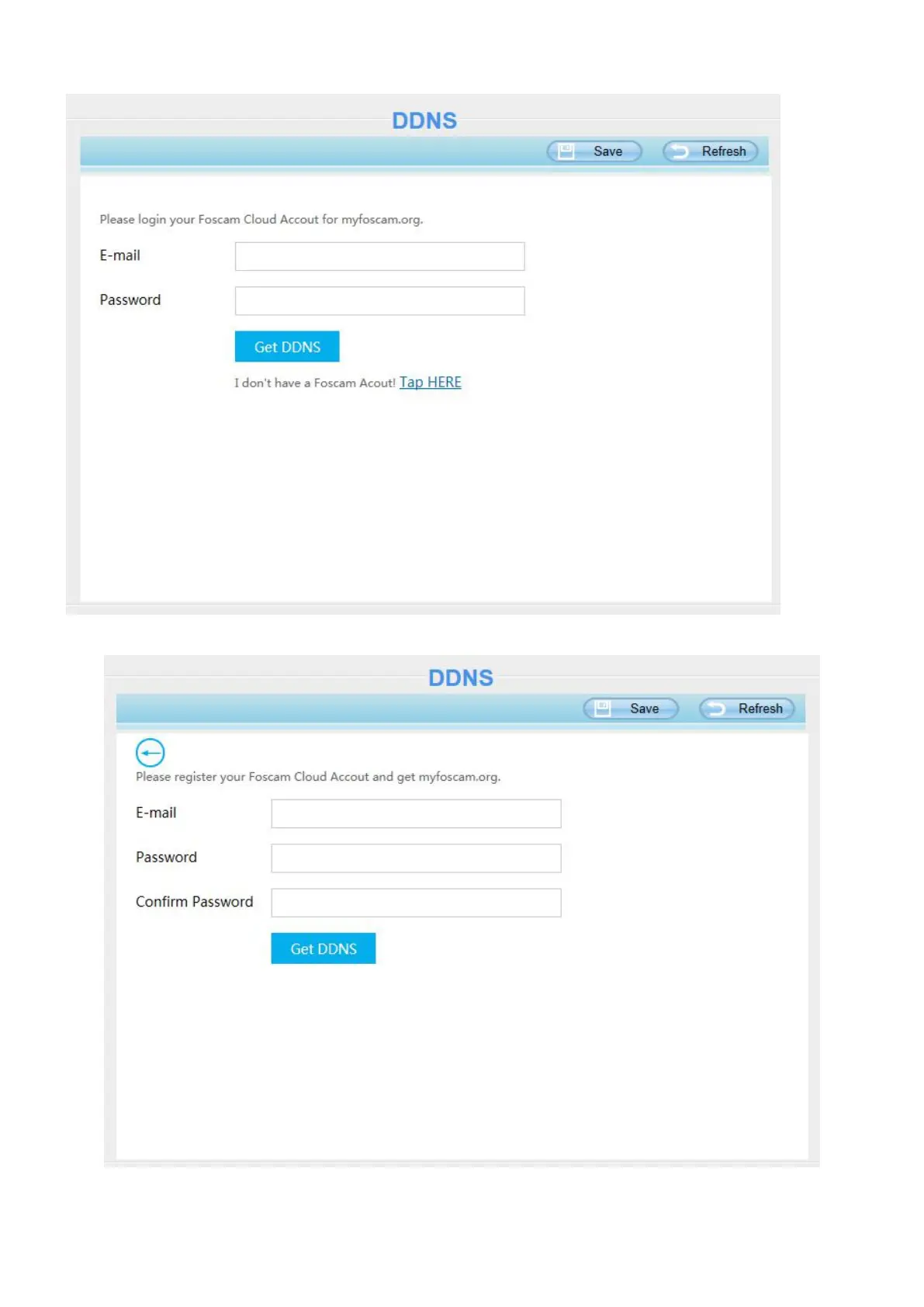 If you don’t have a Foscam Cloud account, click “Tap HERE” to register one, then click “Get DDNS”.