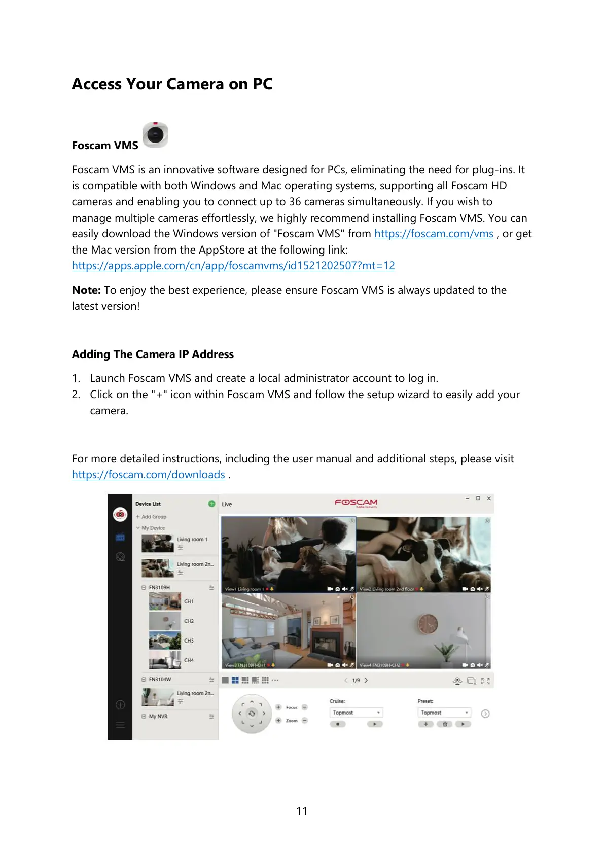 manage multiple cameras effortlessly, we highly recommend installing Foscam VMS. You can