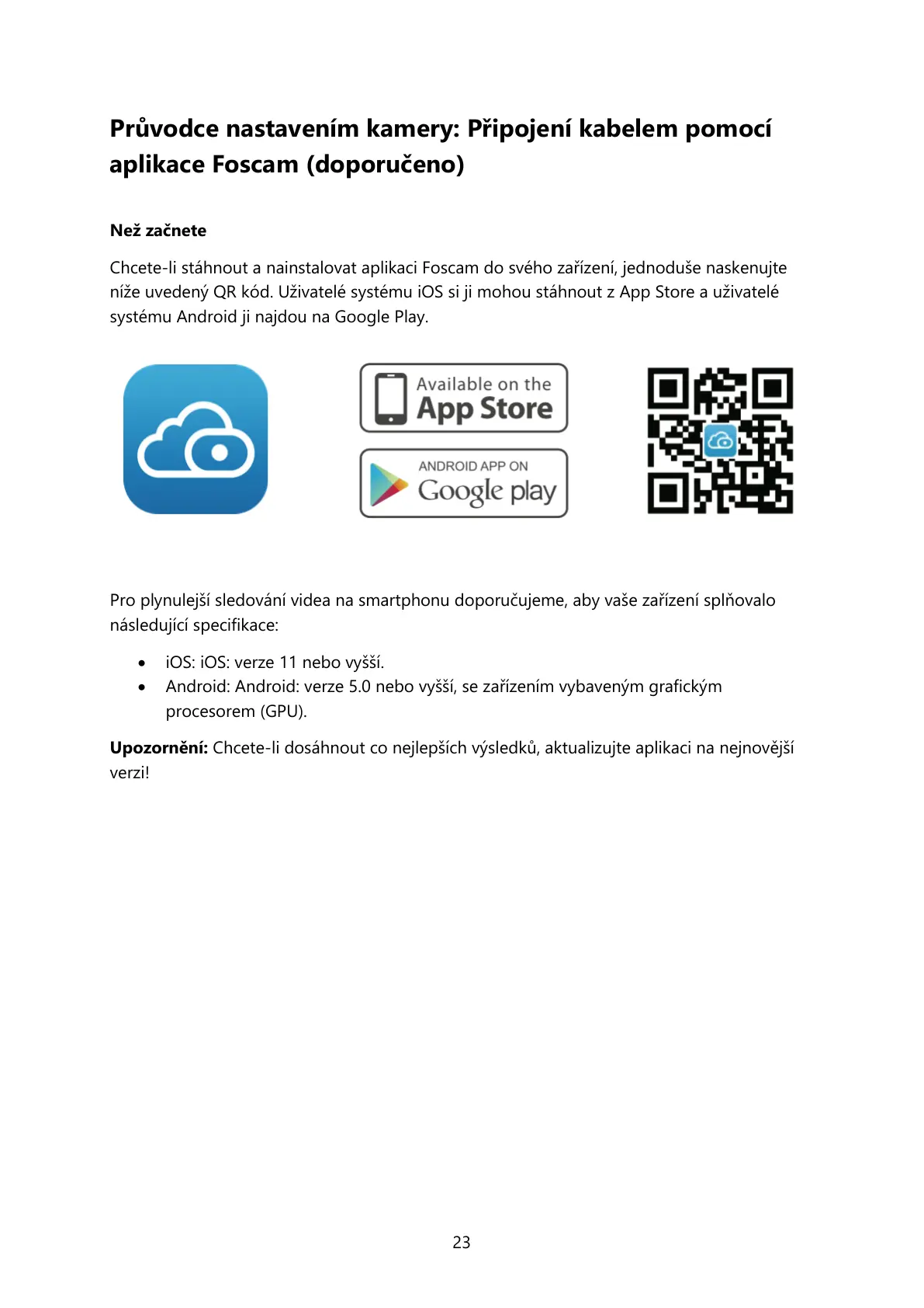 Upozornění: Chcete-li dosáhnout co nejlepších výsledků, aktualizujte aplikaci na nejnovější