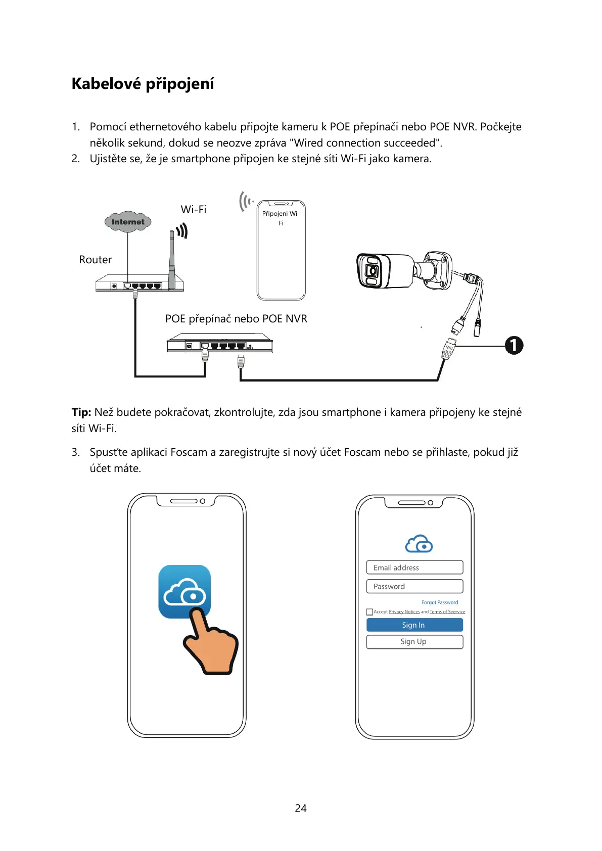 3. Spusťte aplikaci Foscam a zaregistrujte si nový účet Foscam nebo se přihlaste, pokud již