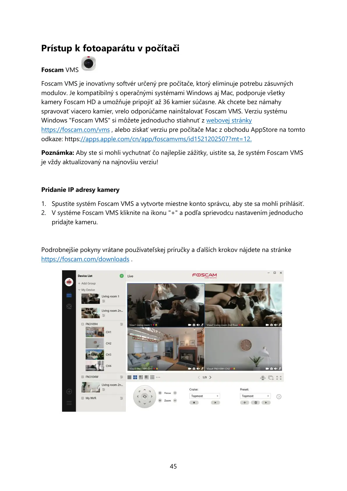 Windows "Foscam VMS" si môžete jednoducho stiahnuť z webovej stránky